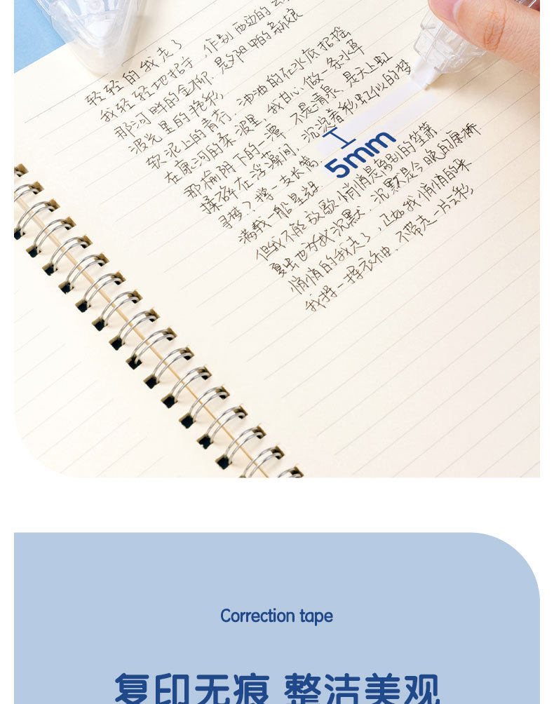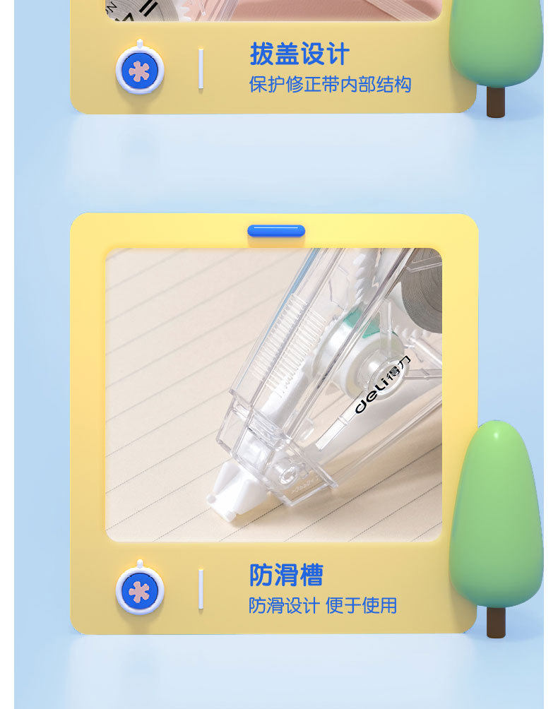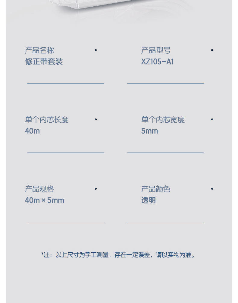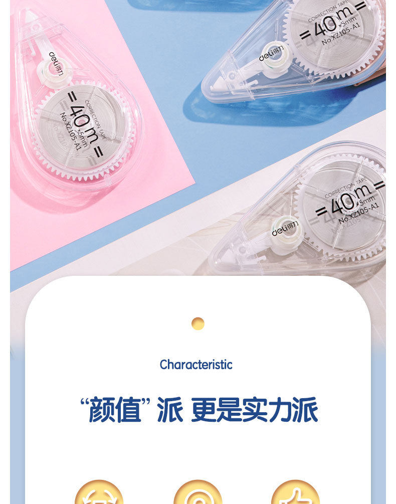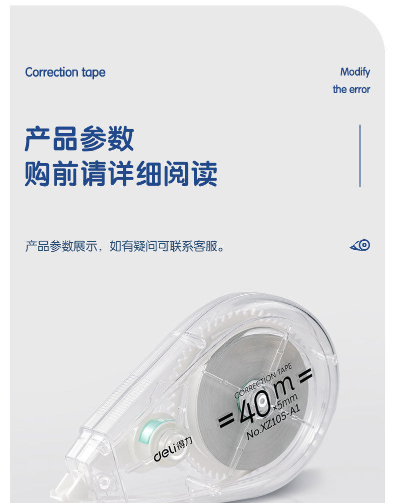 Deli Xz105-A1 Correction Tape 40m Transparent Correction Tape for Students with Large Capacity Light Correction Tape 5 Pack