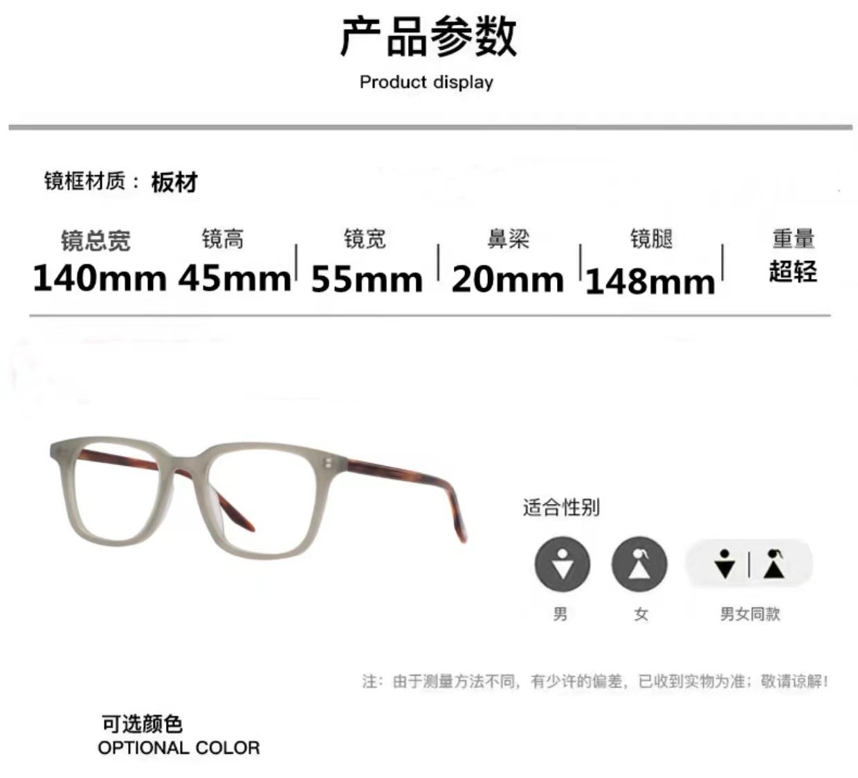 | Frame color | Gray green white flat,Bright black and white flat,Sand powder white flat,Shahuang Baiping |