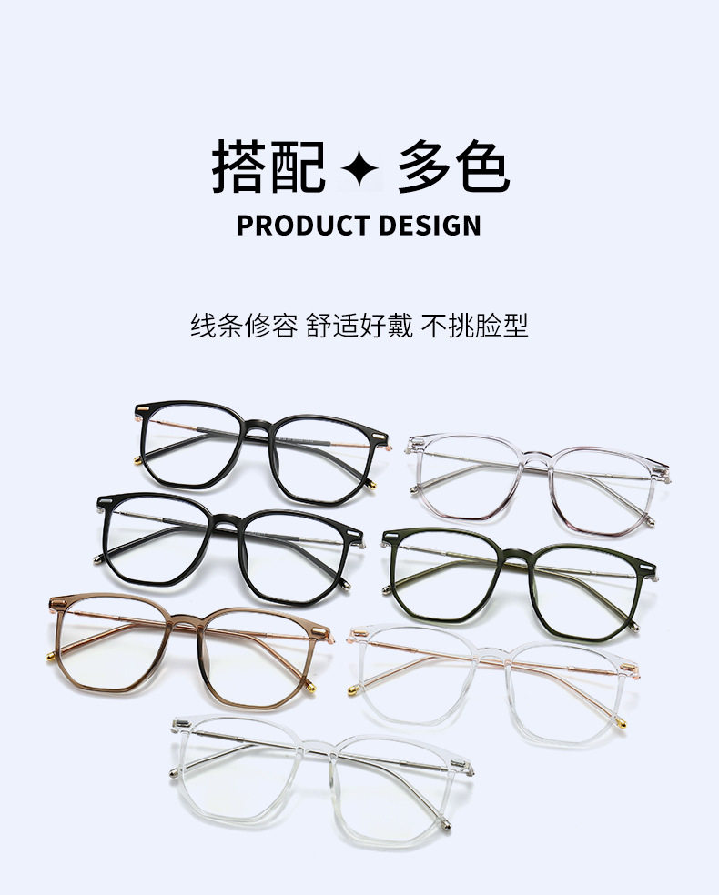 No Makeup Large Frame New Anti-Blue Light Glasses High-End Tr90 Fashion Versatile Glasses Frame for Women Wholesale Glasses Frame for Men