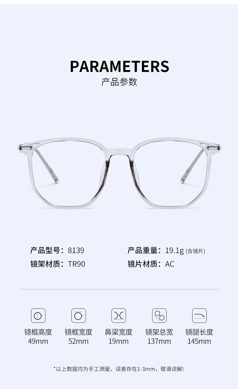 | Glasses structure | Full framework |