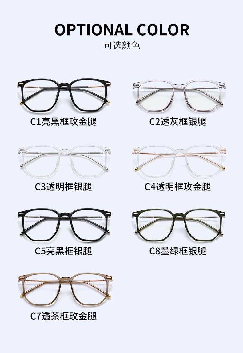 | Frame Color | Bright Black Frame Rose Gold Leg C1,Gray Frame Silver Leg C2,Transparent frame silver leg C3,Transparent Frame Rose Gold Leg C4,BRIGHT BLACK FRAME SILVER LEG C5,Dark green frame silver leg C6,Tea Box Rose Gold Leg C7 |