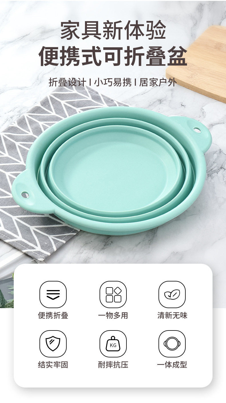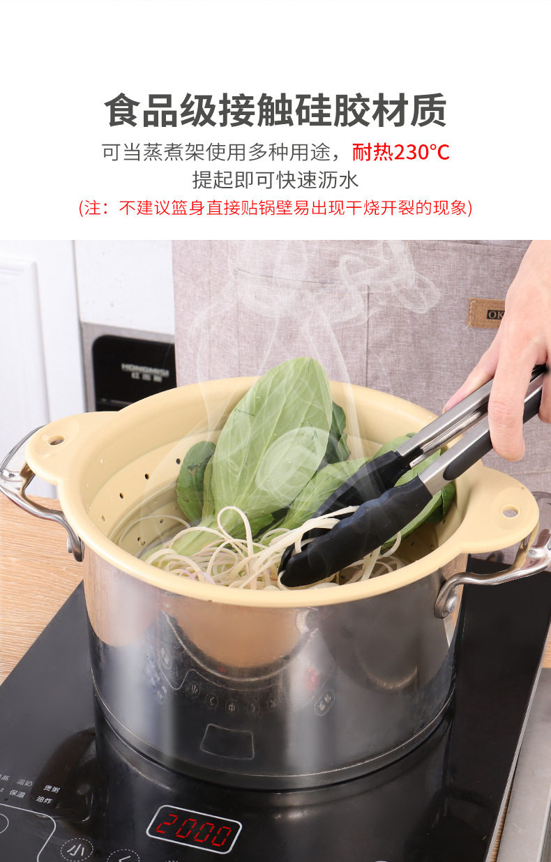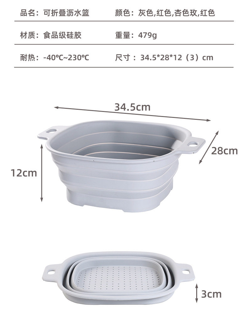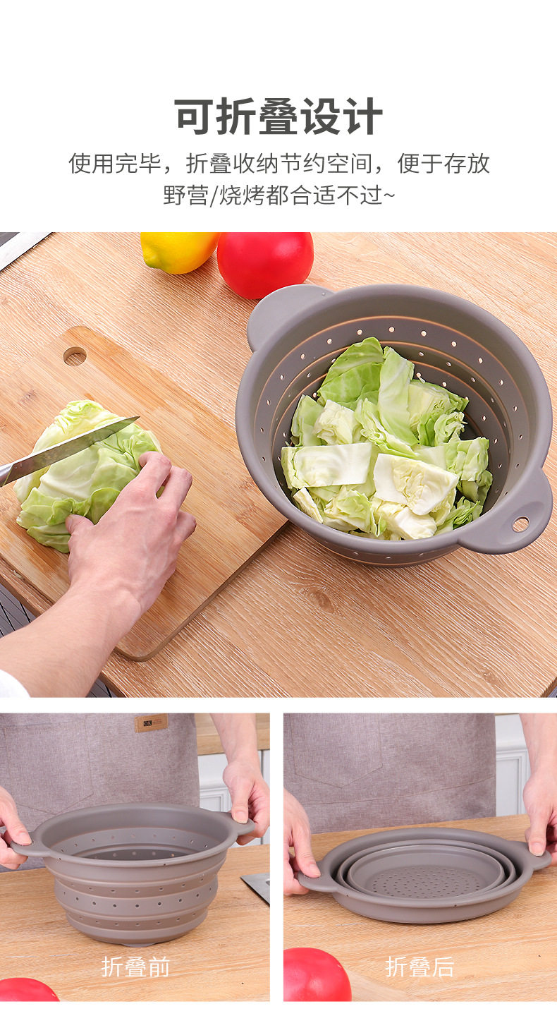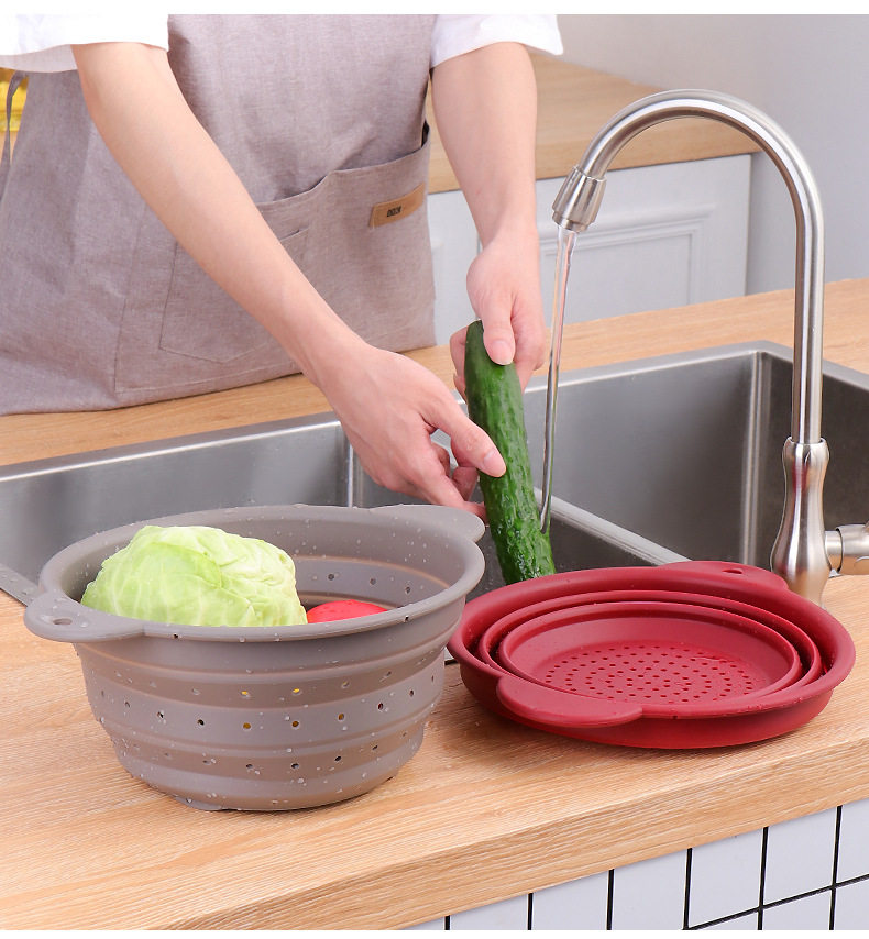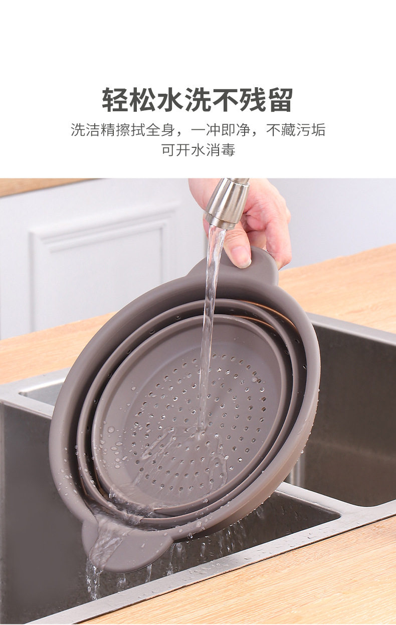 Food-Grade Silicone Foldableable Drain Basket Vegetable and Fruit Washing Basket Kitchen Round Square Drain Basket High Temperature Resistant