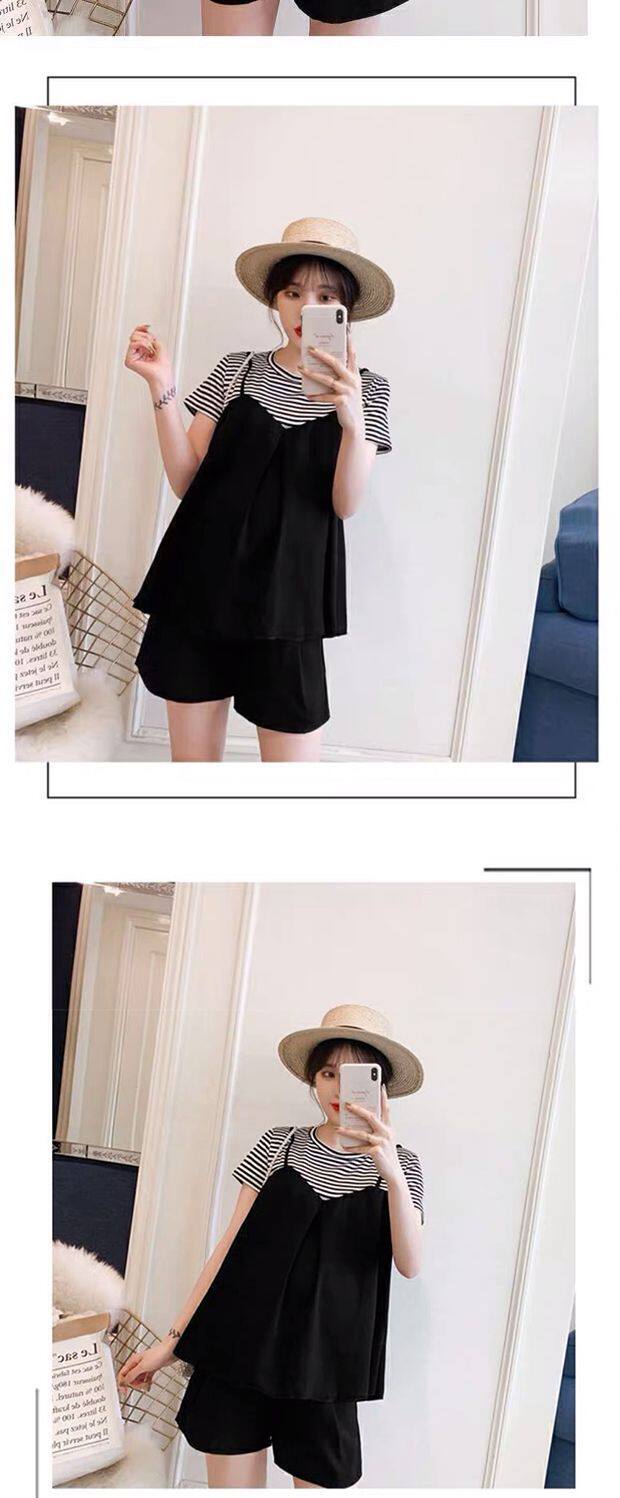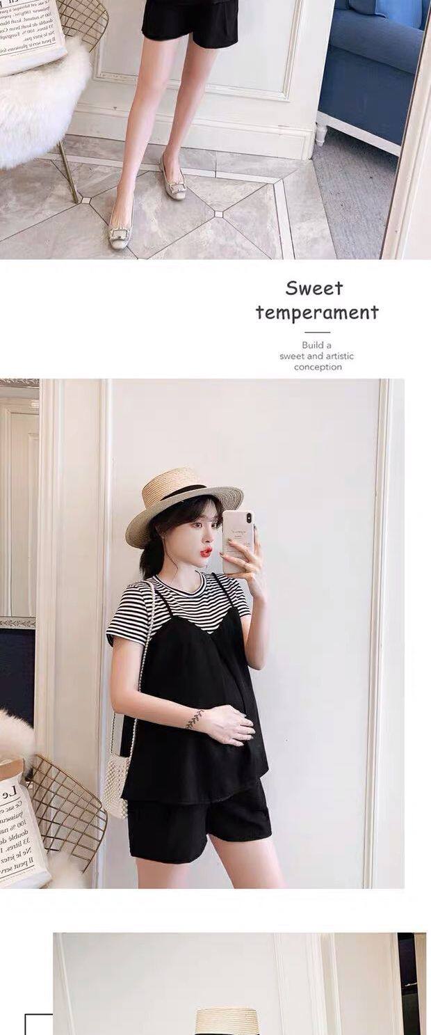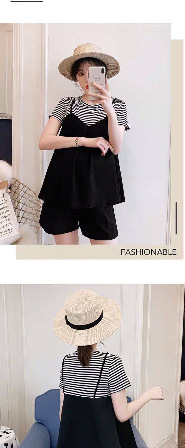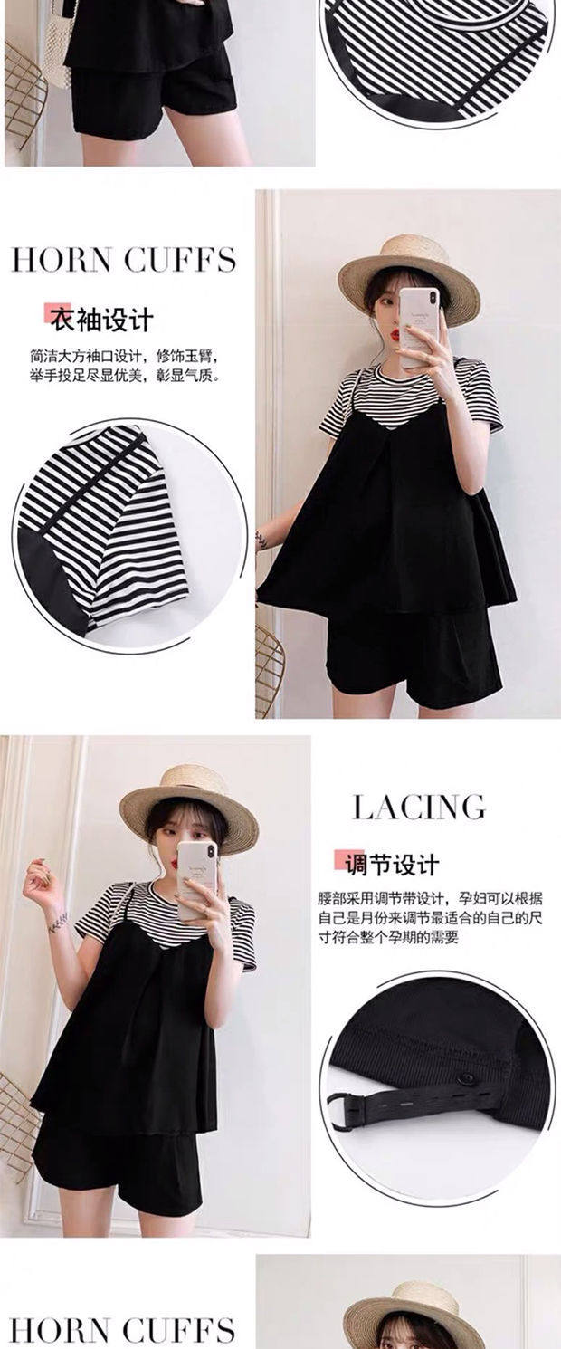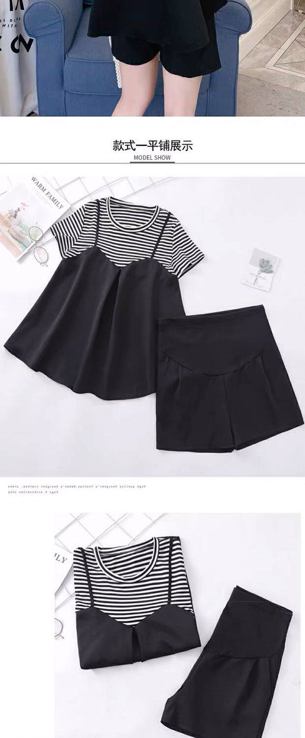 Pregnant Women's Summer suit Fashion Fake Two-piece Striped Patchwork Top Belly Shorts Outgoing Clothes Two-piece Set