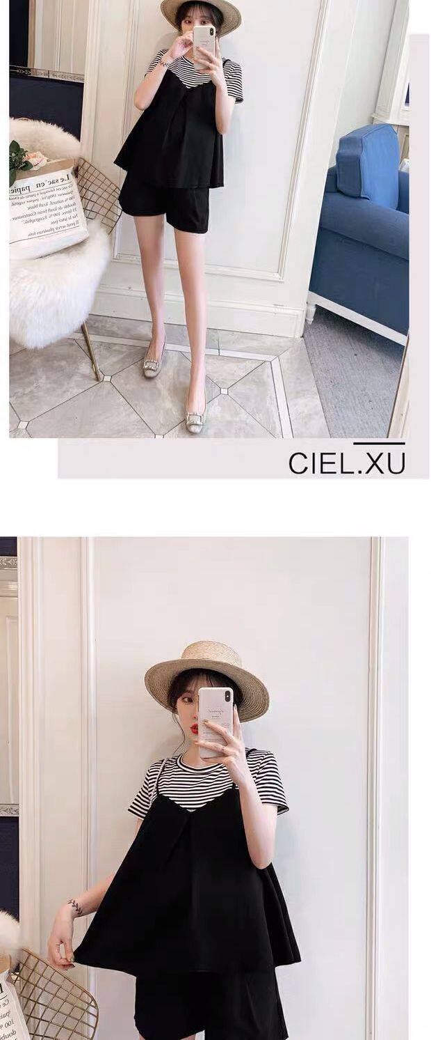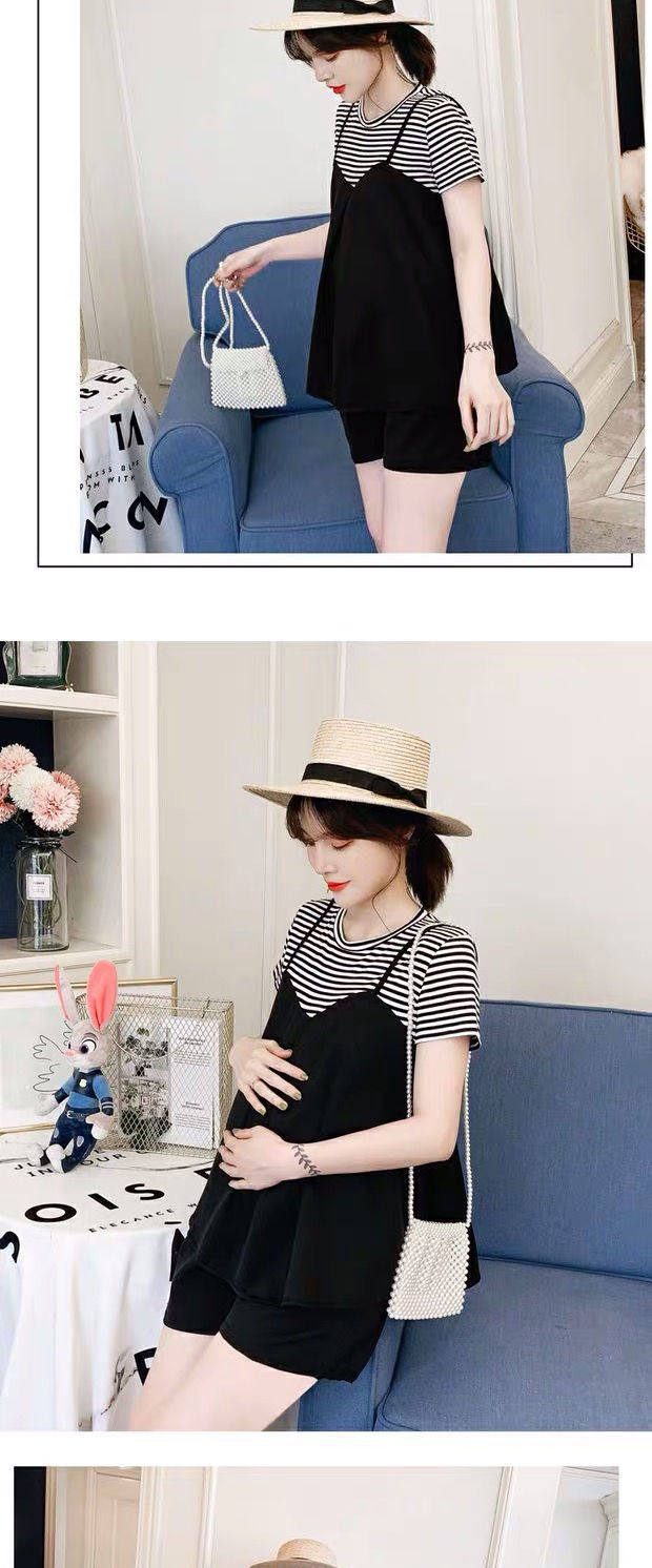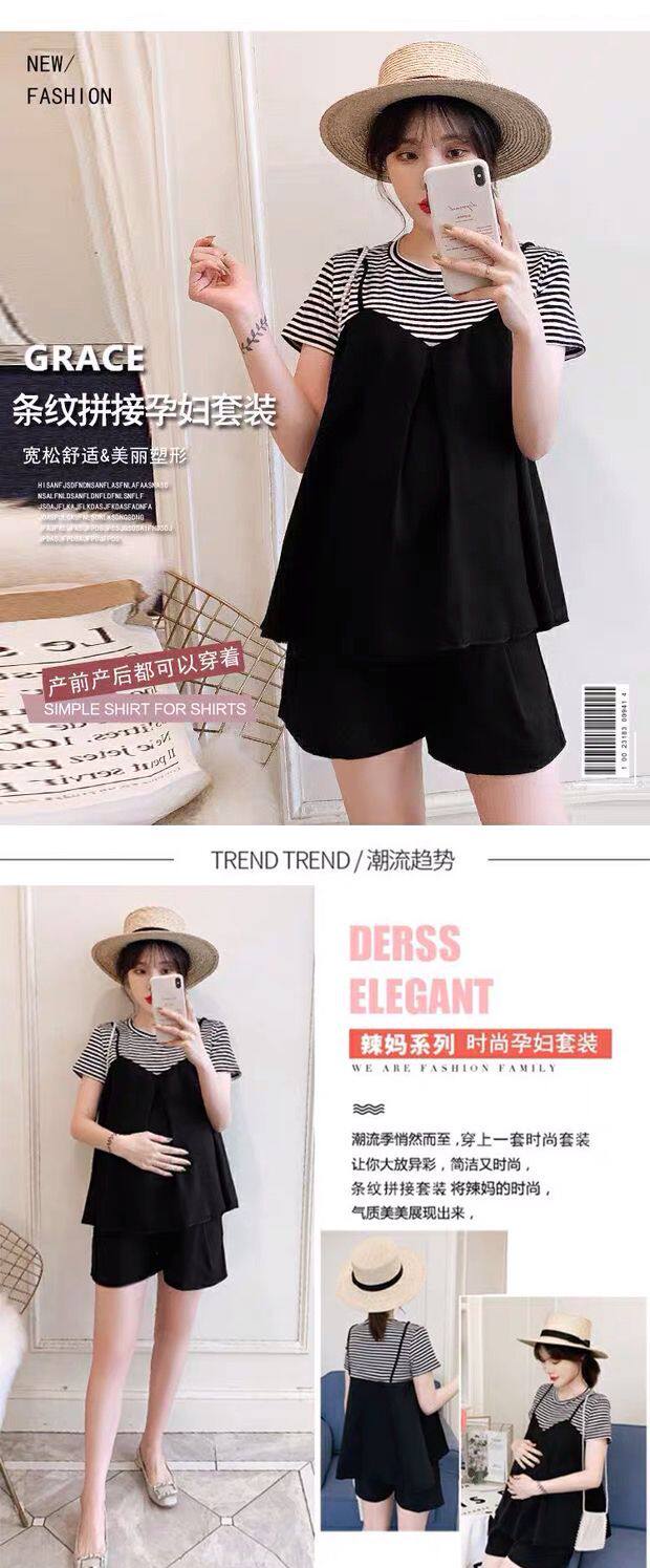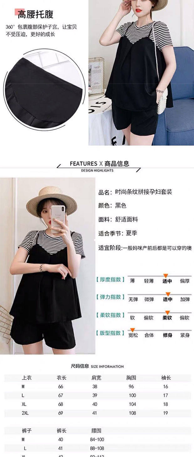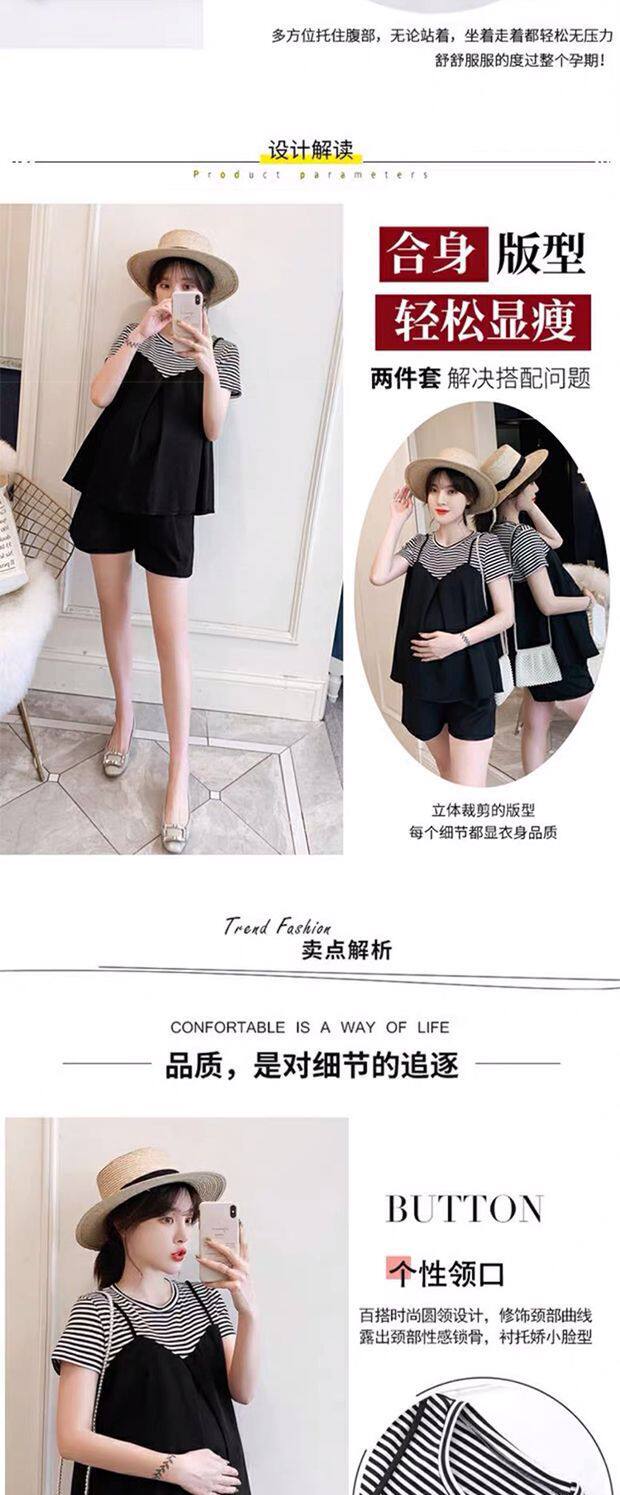 Pregnant Women's Summer suit Fashion Fake Two-piece Striped Patchwork Top Belly Shorts Outgoing Clothes Two-piece Set