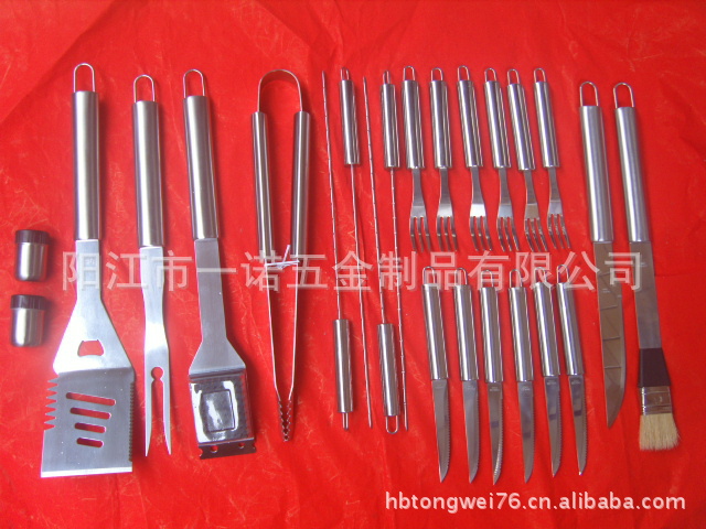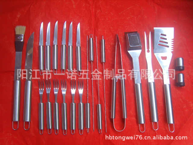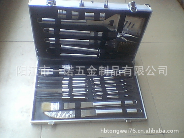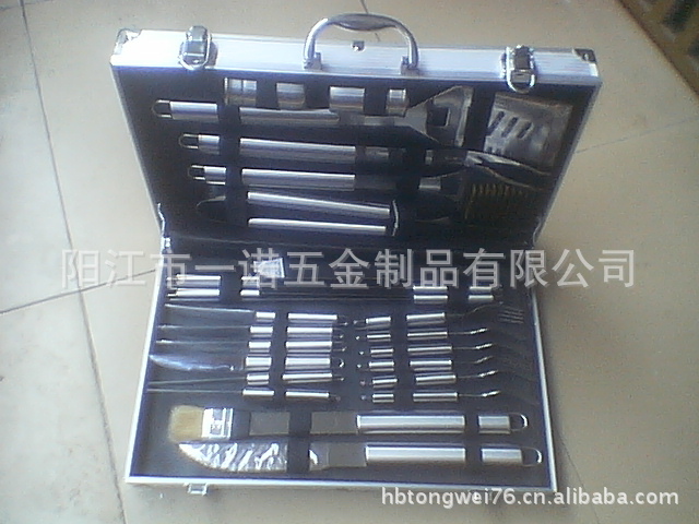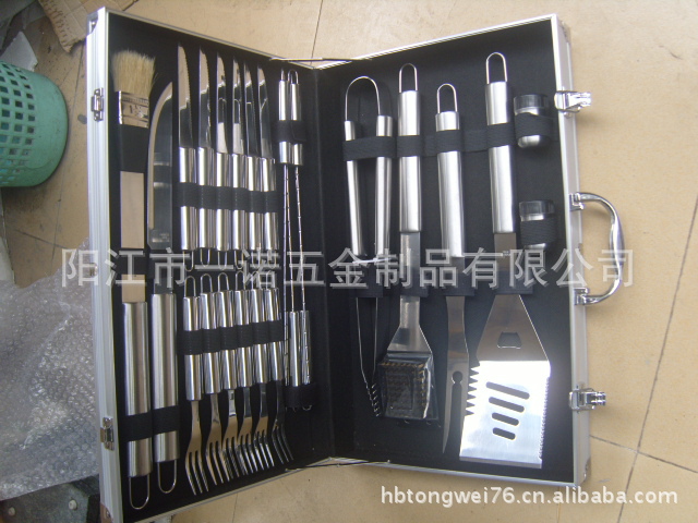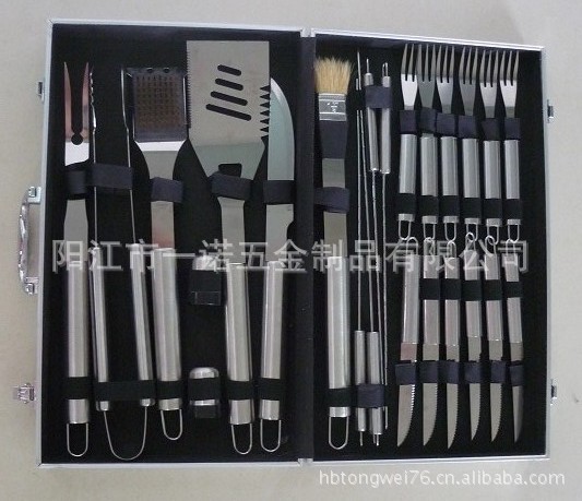 P-011W Barbecue Tool Set, Barbecue Fork Brush Clip, 24-Piece Aluminum Box Bbq Combination Grill Set