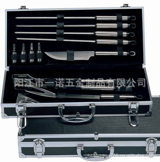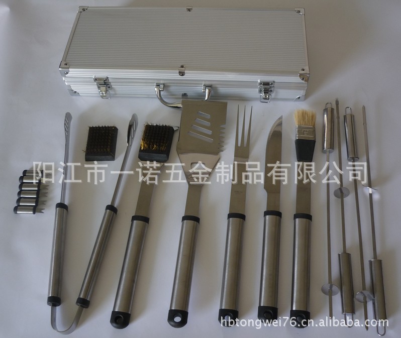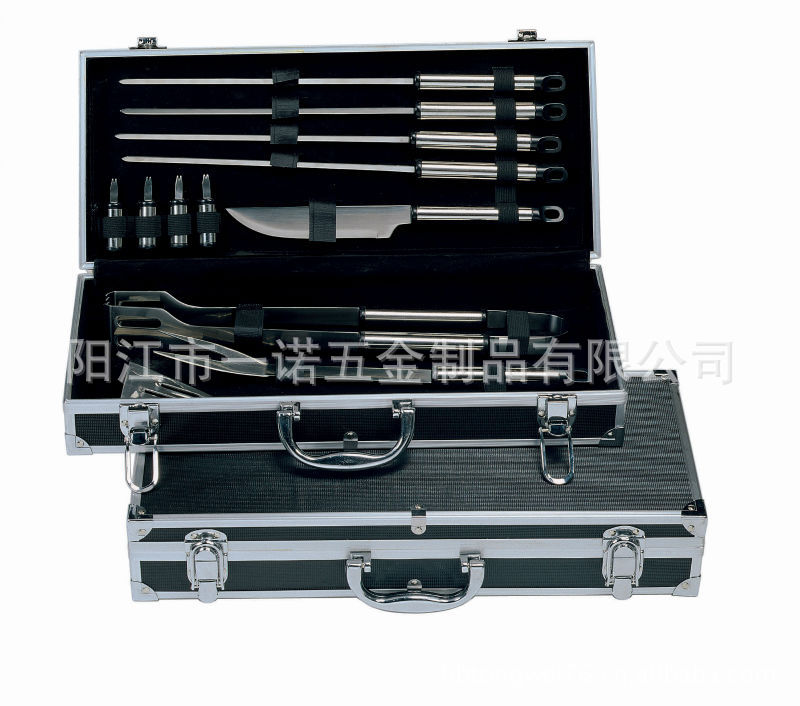[Professional Quality] Supply Bbq Barbecue Tool Set Aluminum Box Barbecue Fork Shovel Brush Clip Bbq Combination Grill Tools