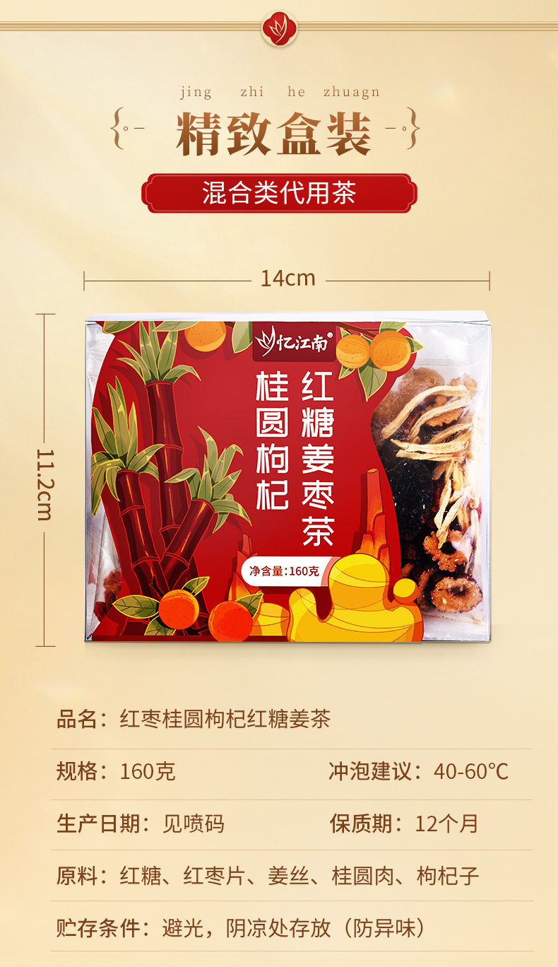 | Packaging specifications | 160g plastic box brown sugar ginger tea |