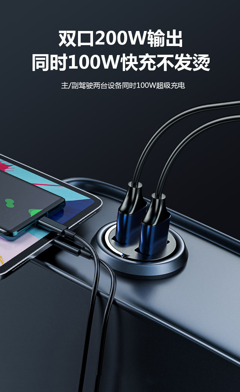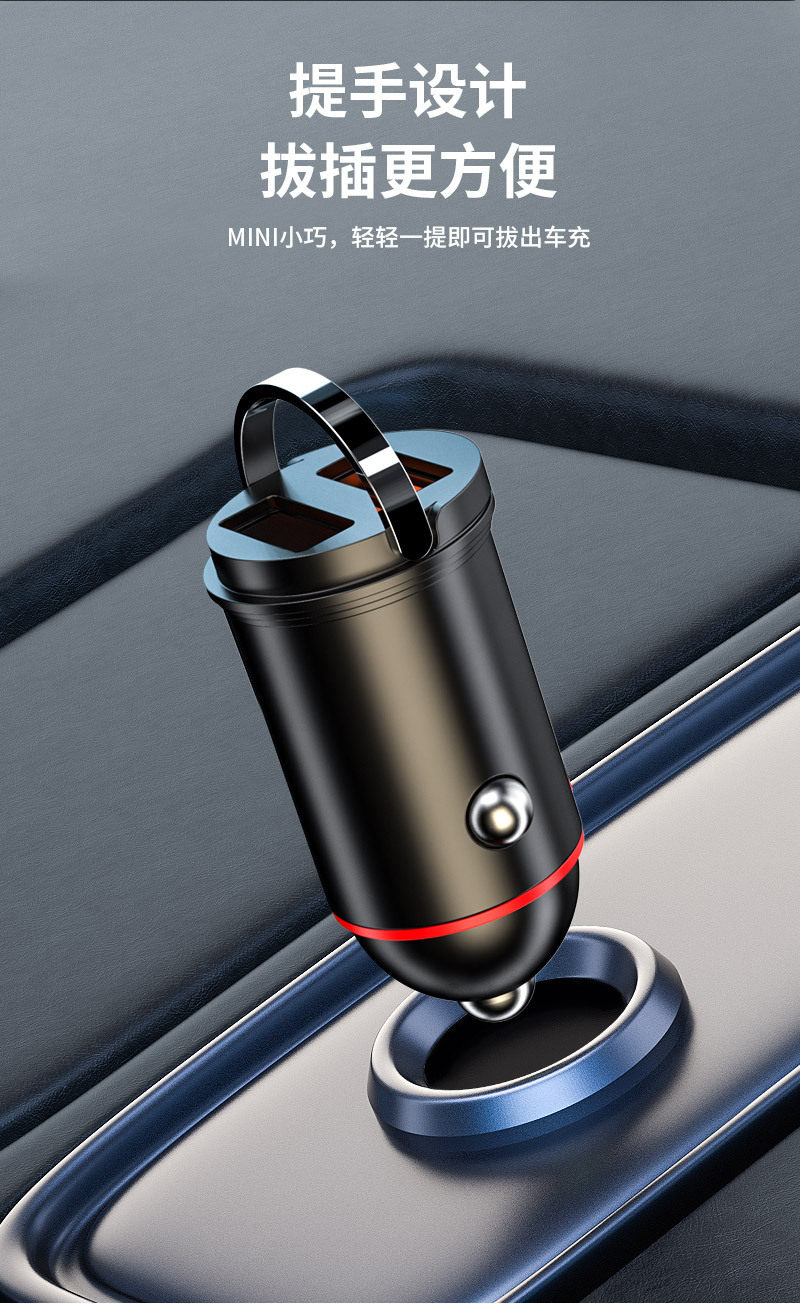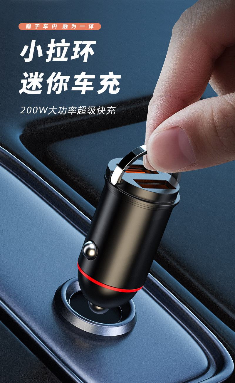 New pull ring car charger dual usb fast charging multifunctional cigarette lighter mini hidden 200w flash charging car charger