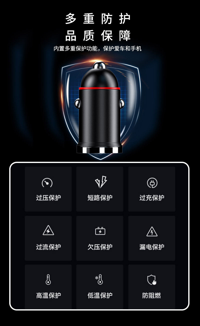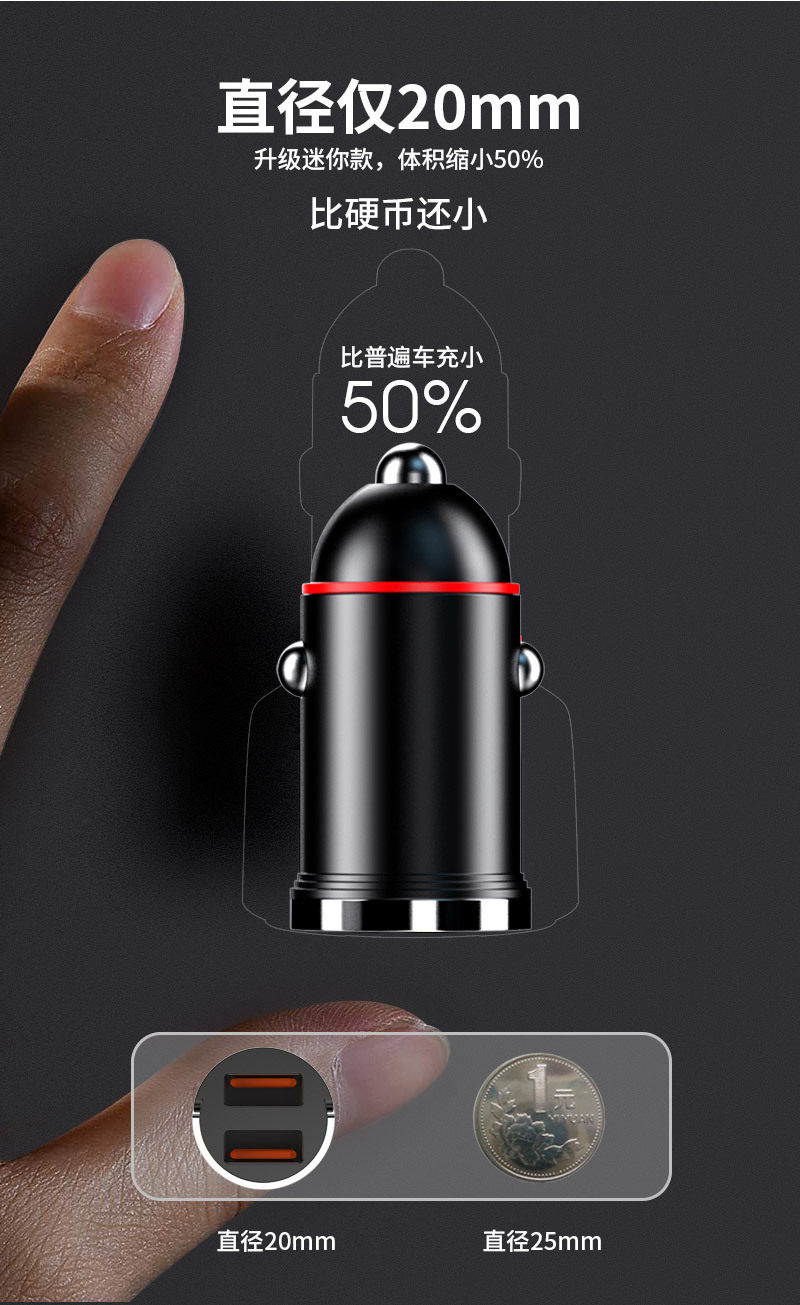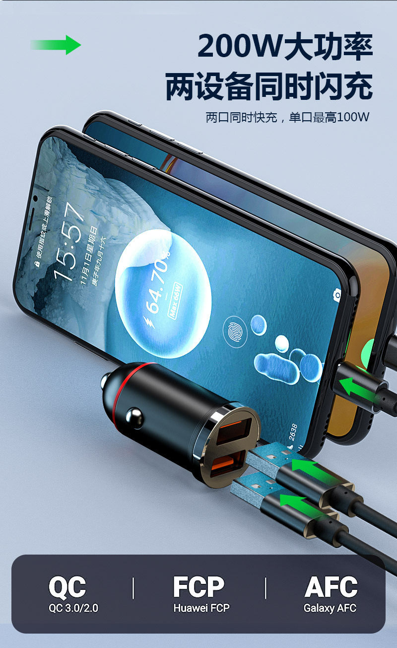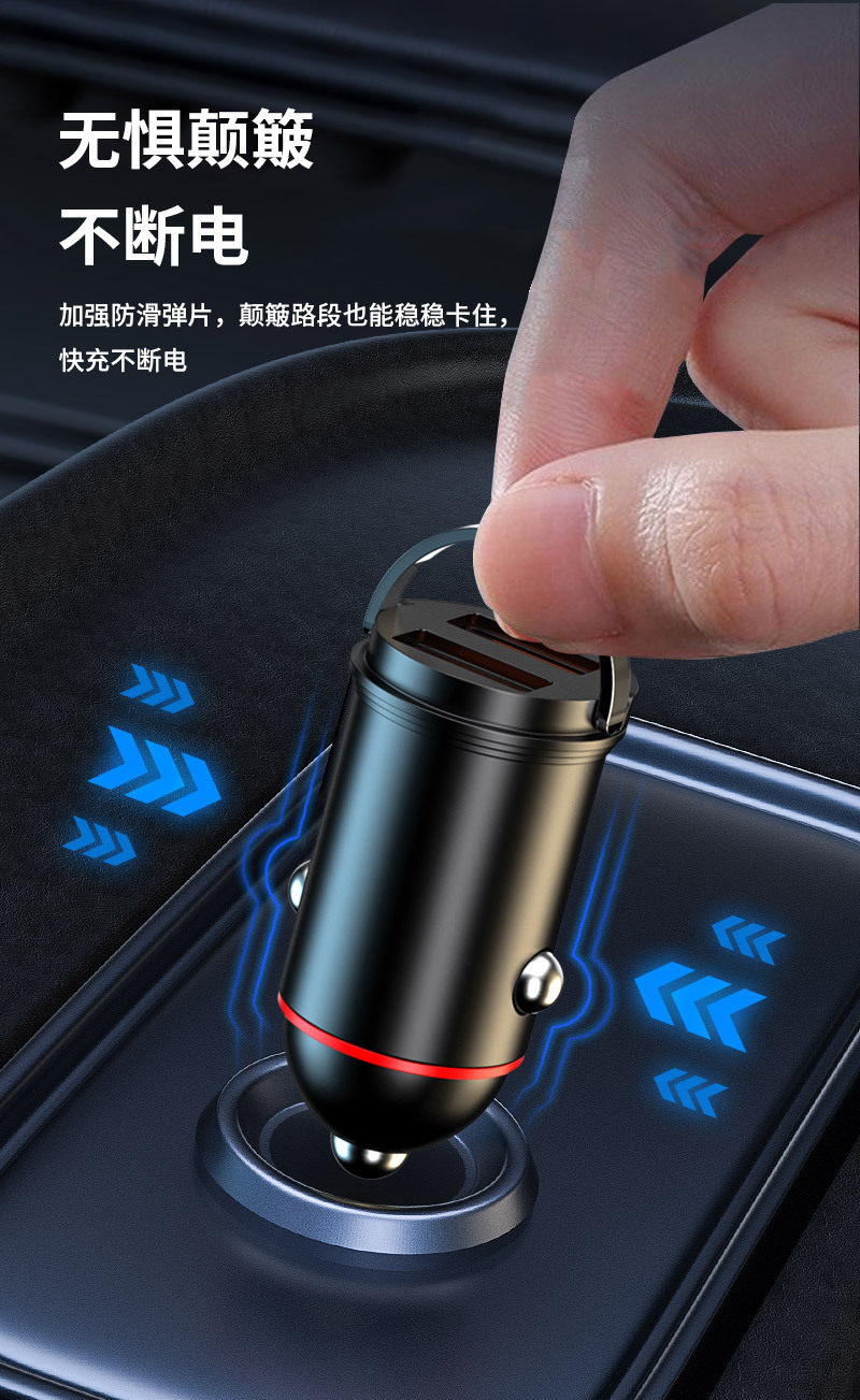 New pull ring car charger dual usb fast charging multifunctional cigarette lighter mini hidden 200w flash charging car charger