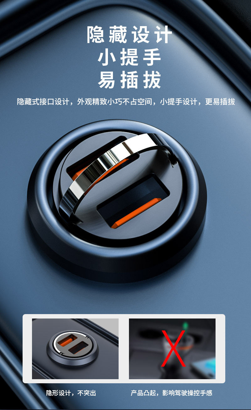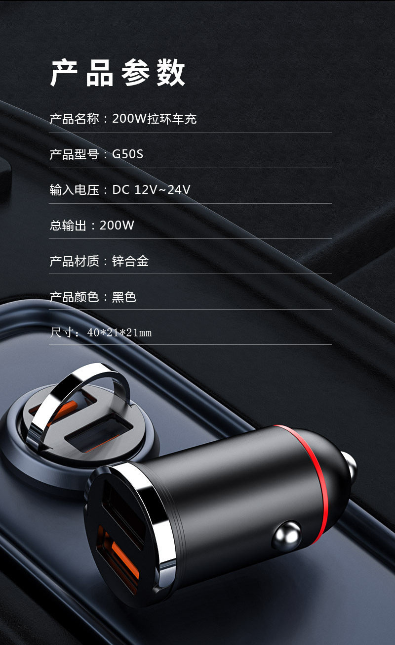 New pull ring car charger dual usb fast charging multifunctional cigarette lighter mini hidden 200w flash charging car charger