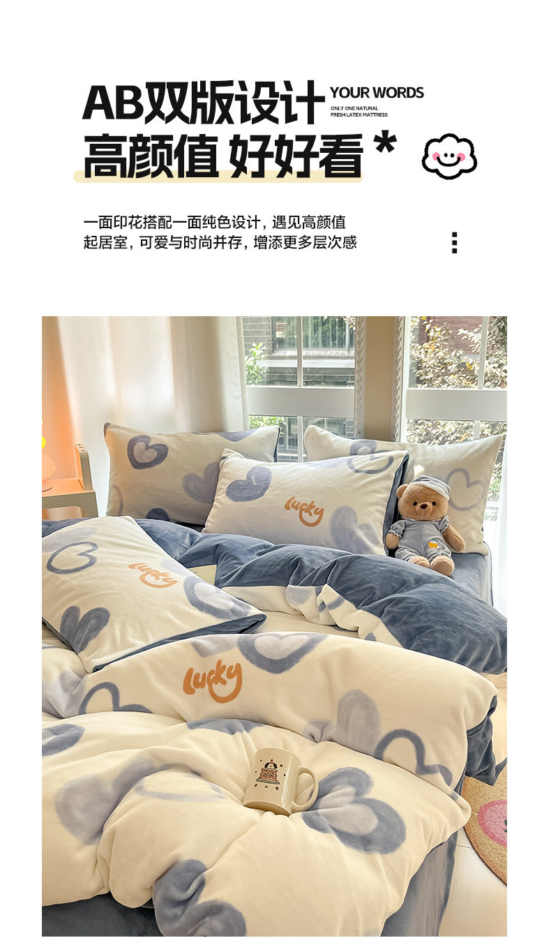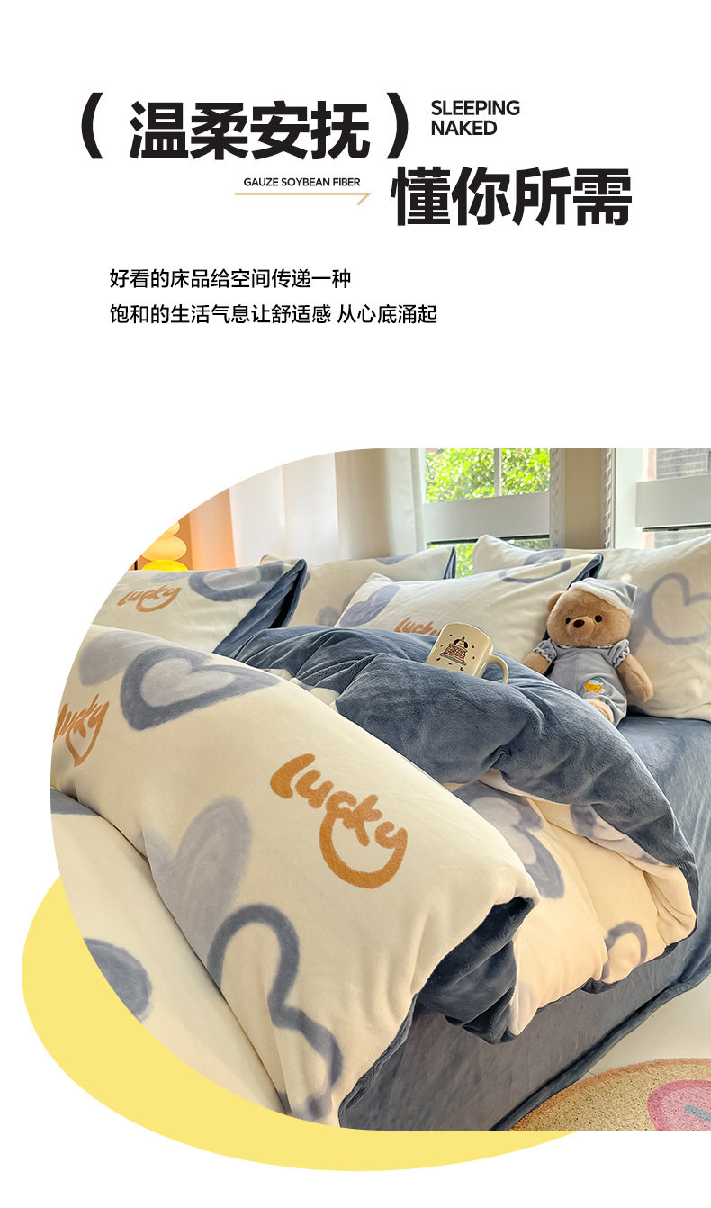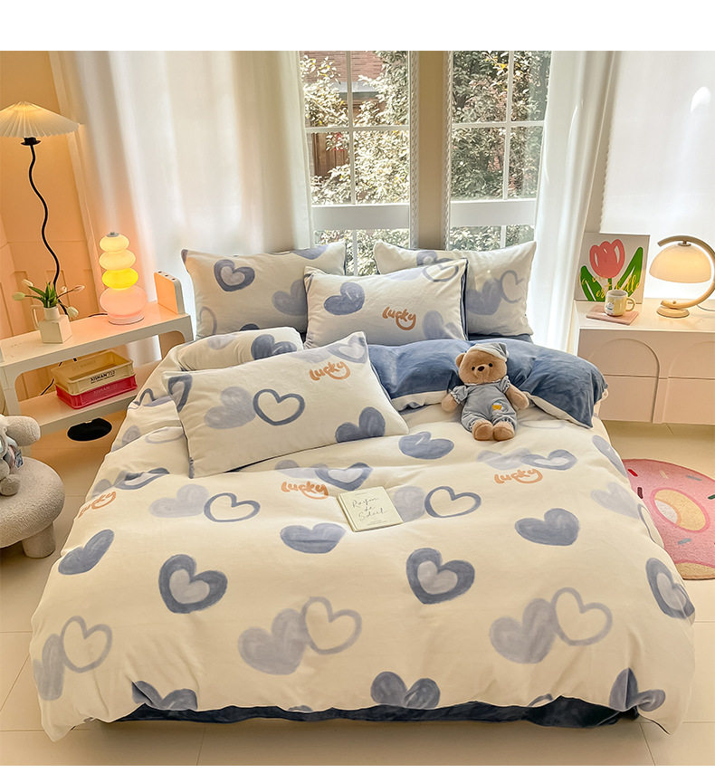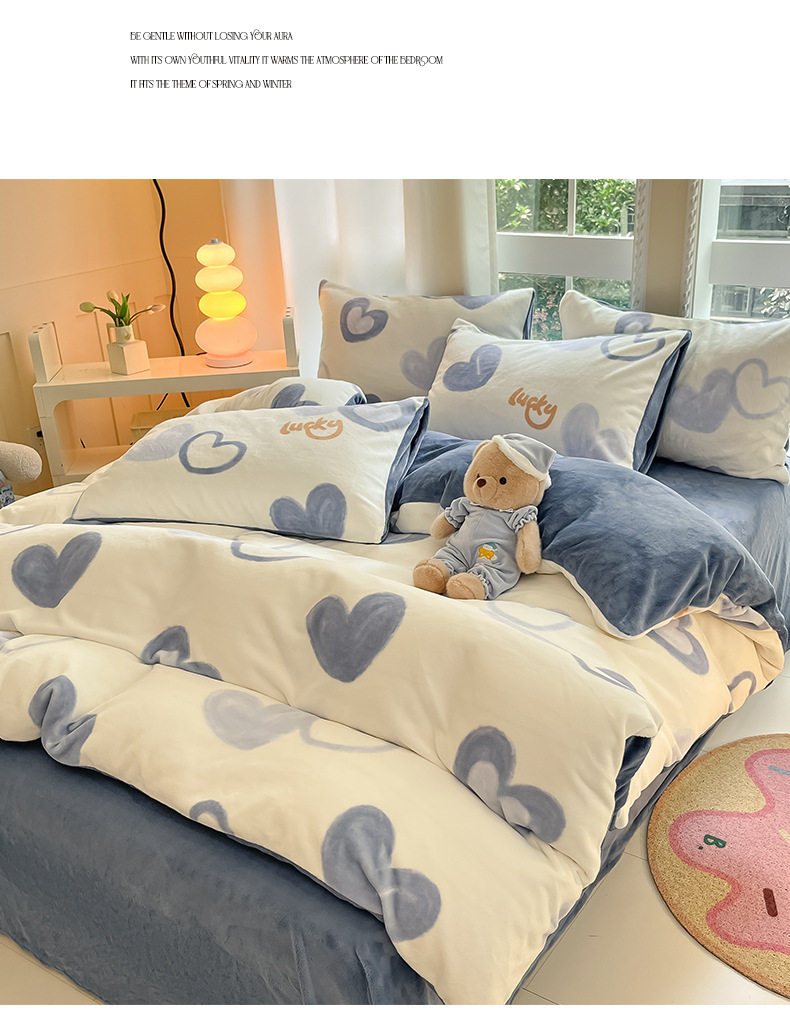 Winter Bed Four-piece Milk Velvet Quilt Cover Flannel Bed Sheet Student Dormitory Double-sided fleece-lined Three-piece Set Home
