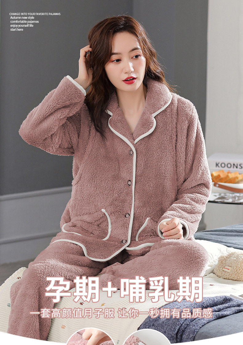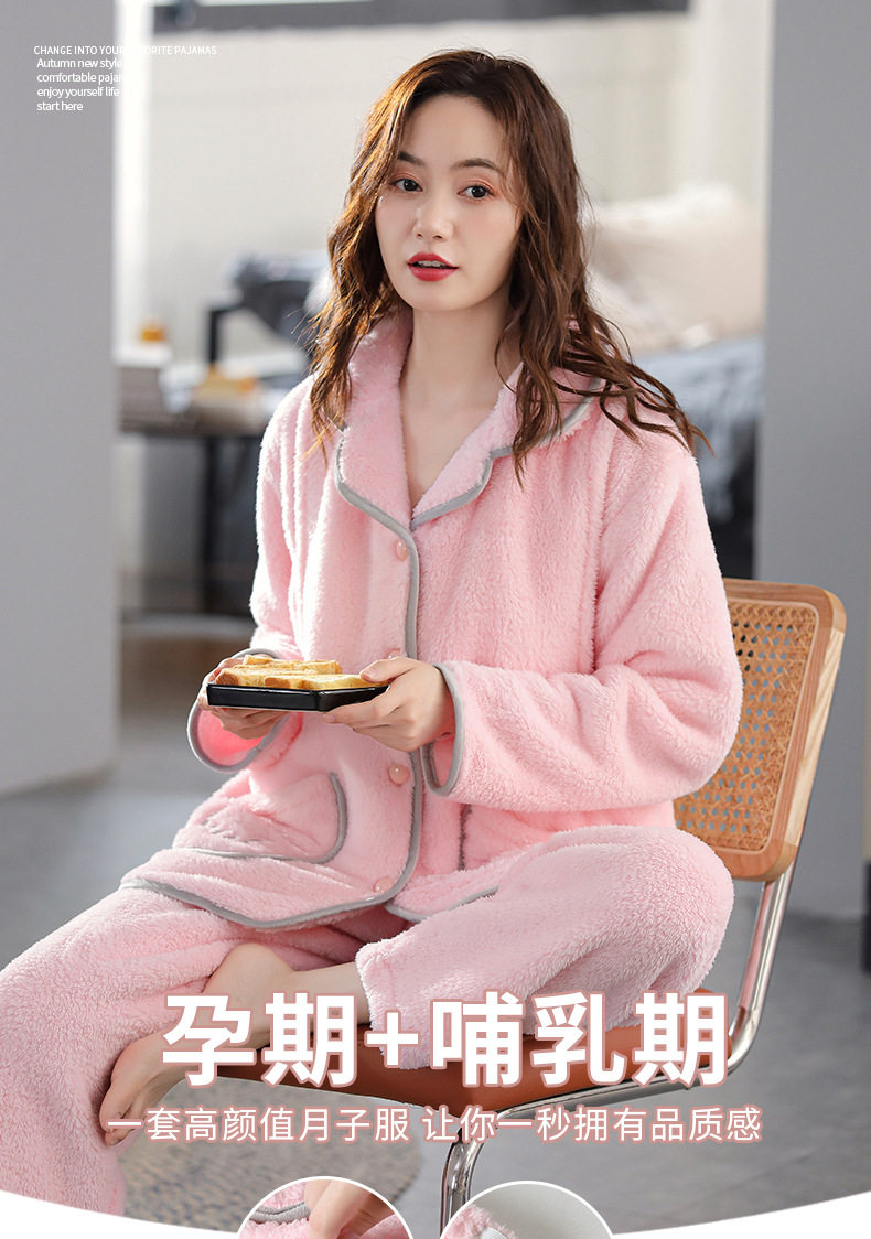 Confinement clothing autumn and winter November 12 postpartum coral fleece thickened warm pregnant women nursing pajamas nursing suit women