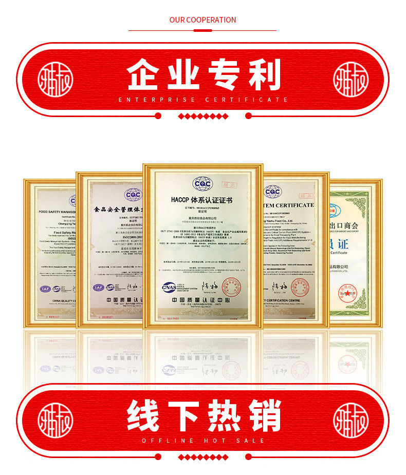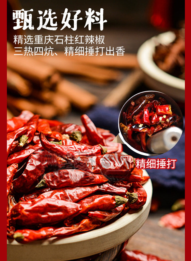 | Raw materials and ingredients | Chili peppers, soybean oil, peanuts, mustard, etc |