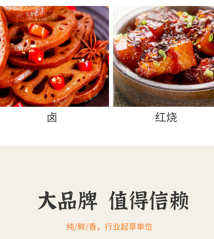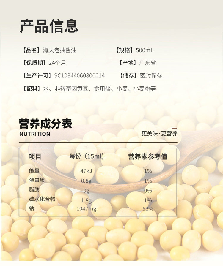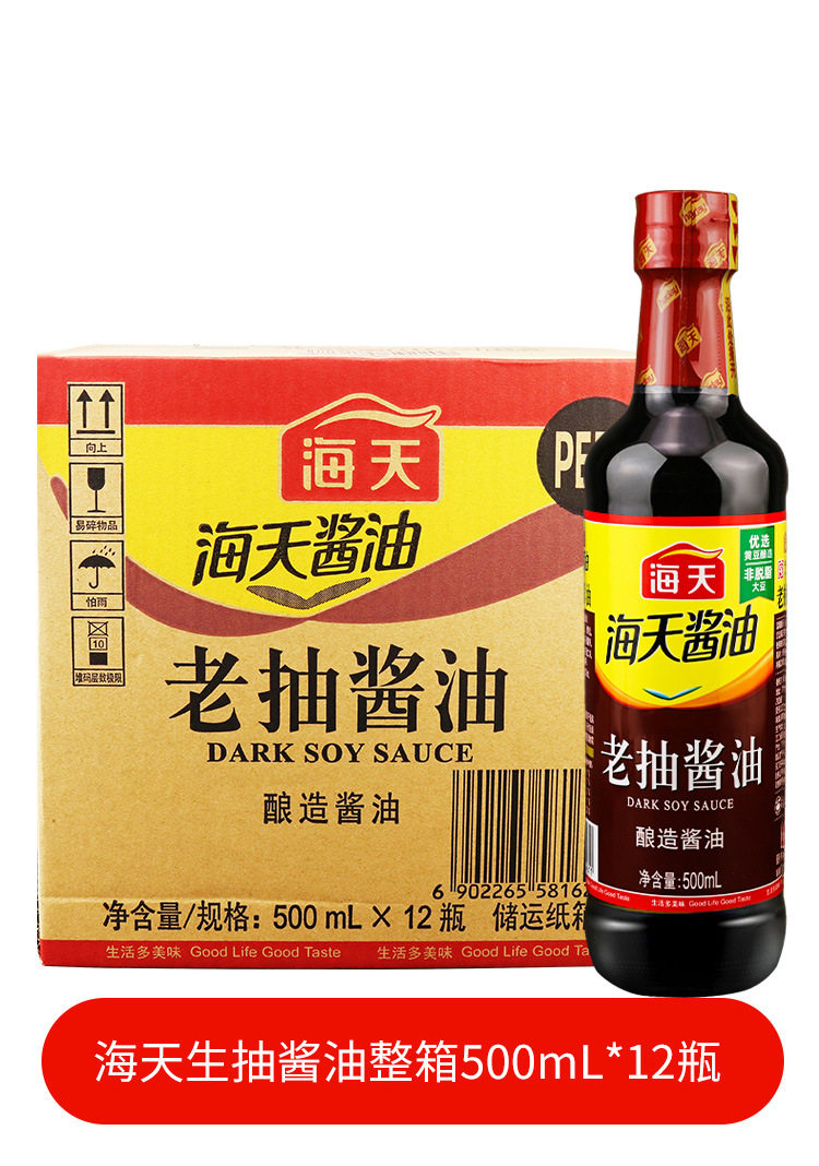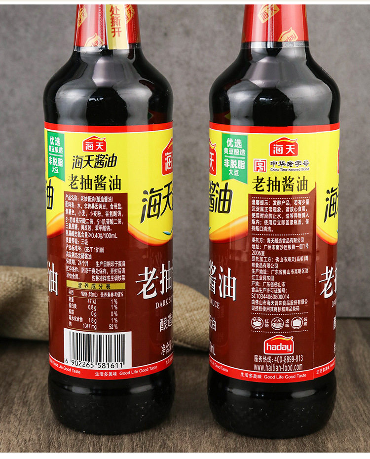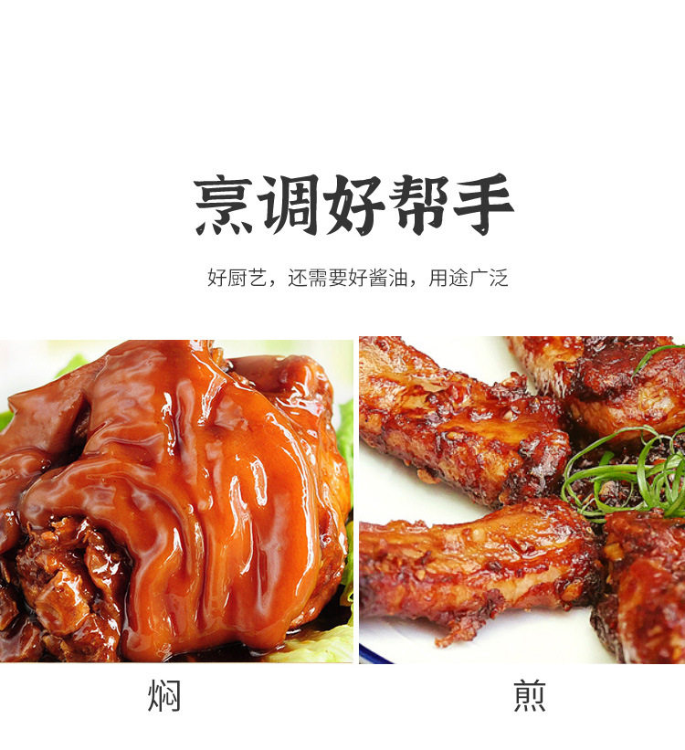| Packaging specifications | Dark soy sauce 500ml*1 bottle,Dark soy sauce 500ml*2 bottles,Light soy sauce 500ml*1 bottle,Light soy sauce 500ml*2 bottles,Dark soy sauce 500ml*1 bottle + light soy sauce 500ml*1 bottle |