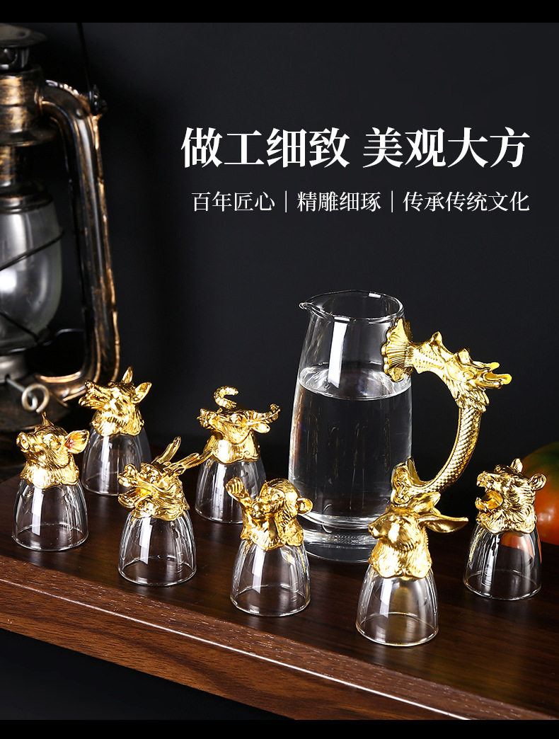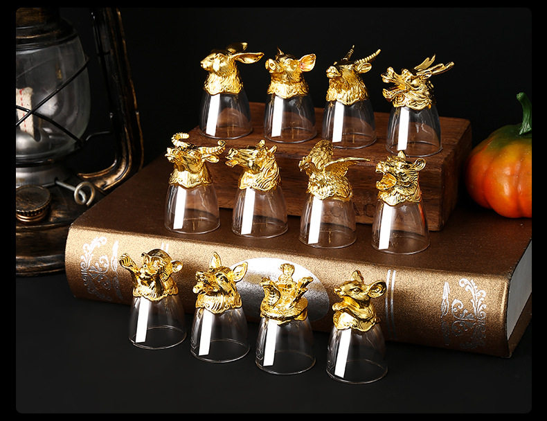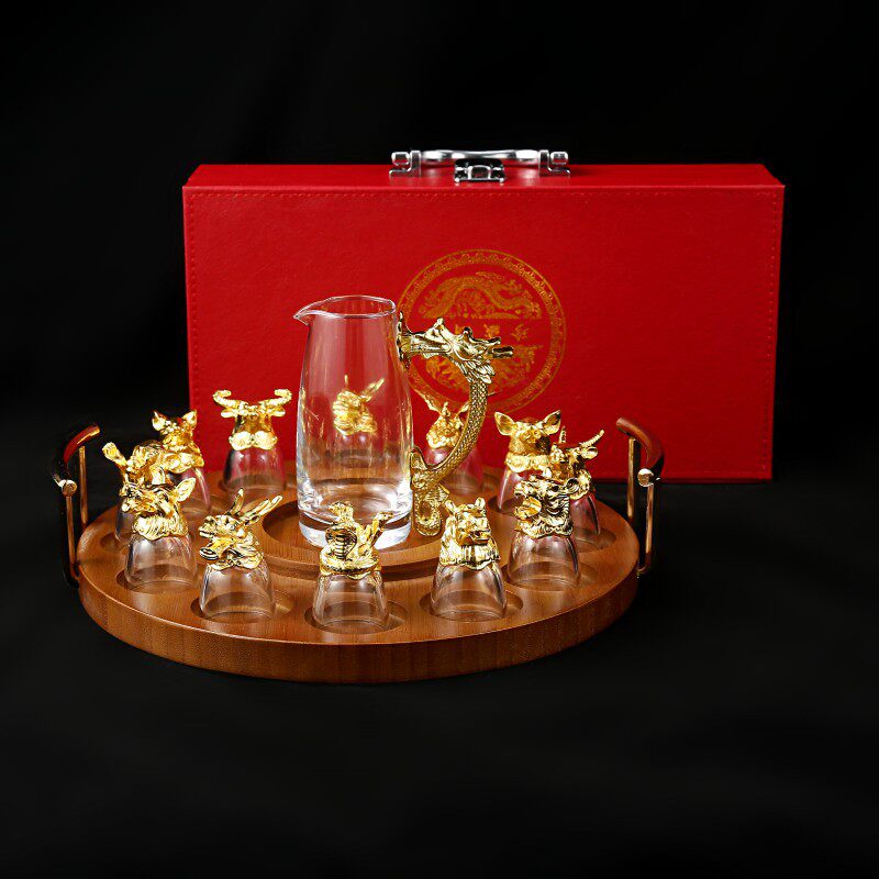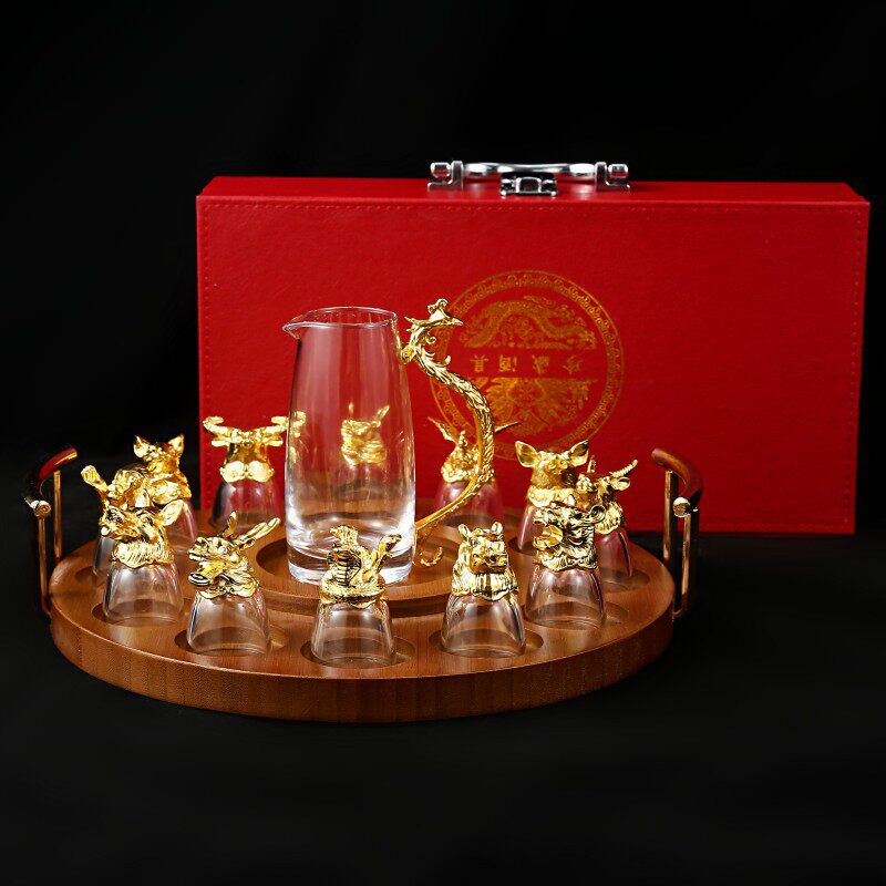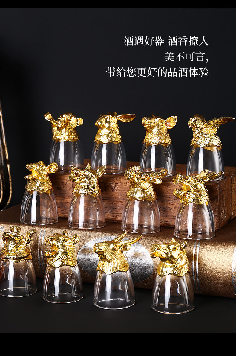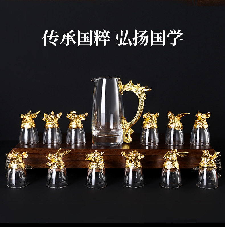 Chinese Zodiac Wine Glass Wine Dispenser Set Household Chinese Glass Wine Set 12 Small Wine Glass Bullets One Drink