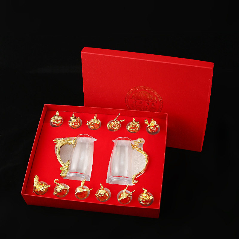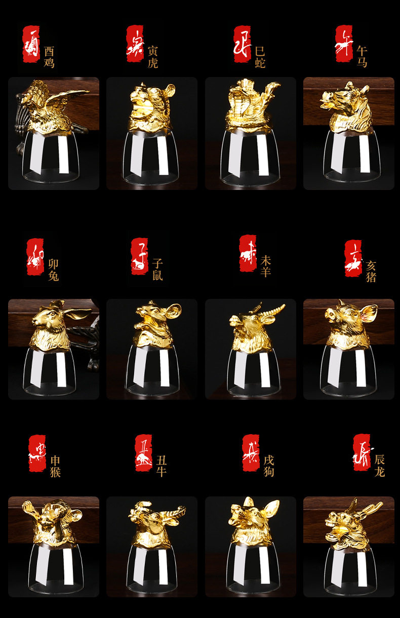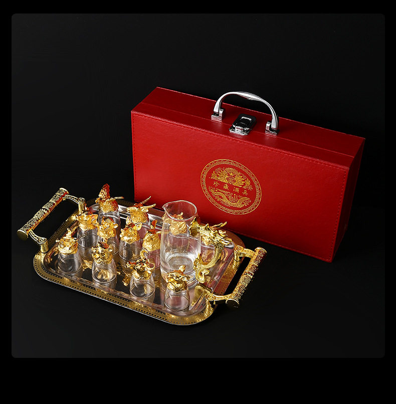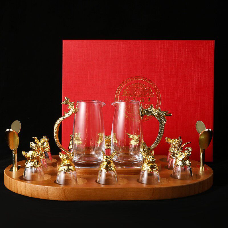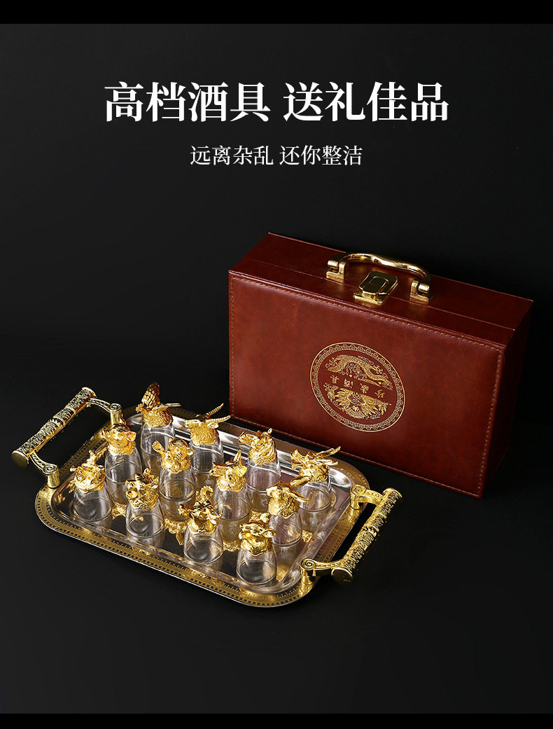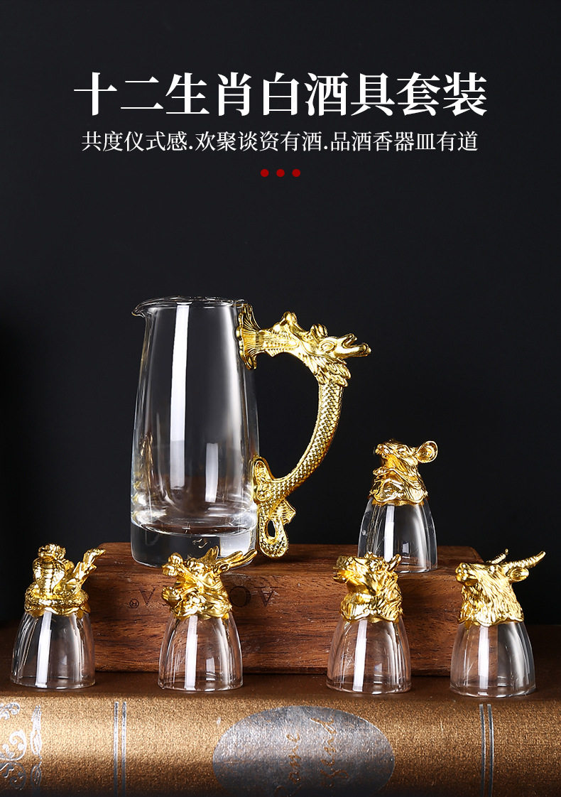 Chinese Zodiac Wine Glass Wine Dispenser Set Household Chinese Glass Wine Set 12 Small Wine Glass Bullets One Drink