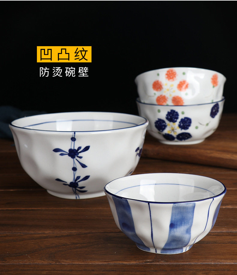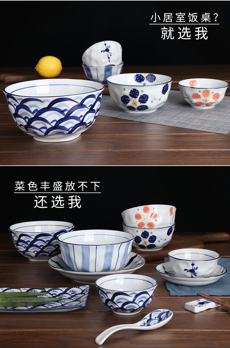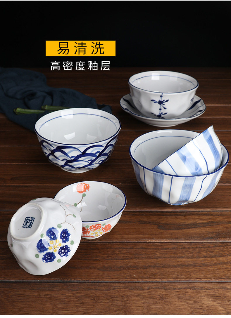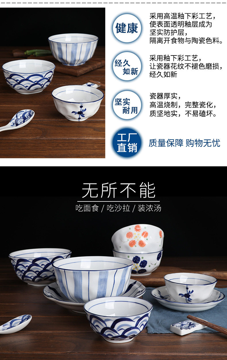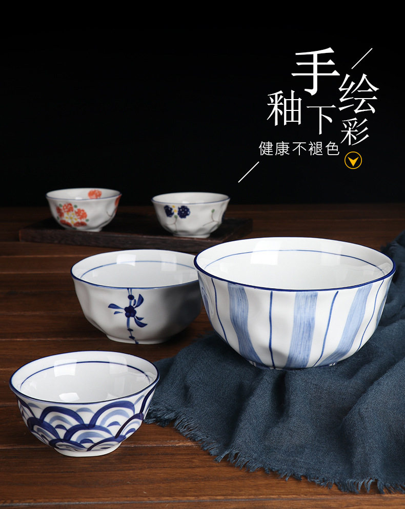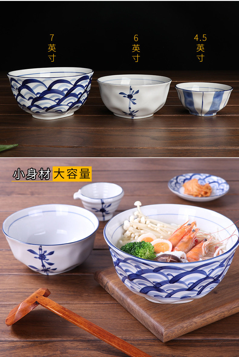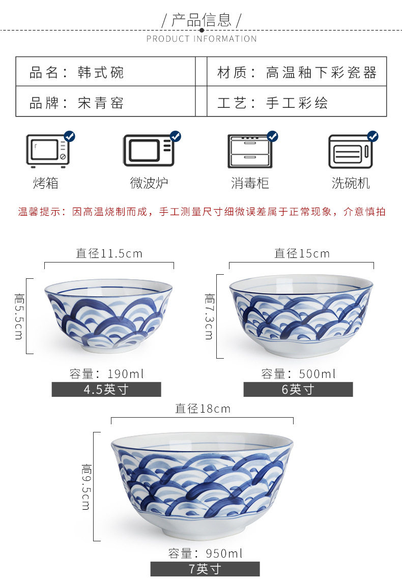 6" Hand-Painted Korean Bowl Household Noodle Soup Bowl Ramen Bowl Ceramic Tableware Set Creative Popular Instant Noodle Bowl Wholesale