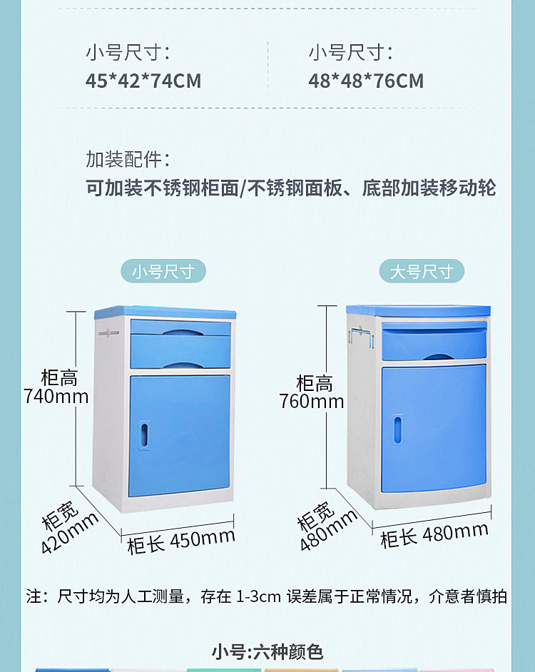 | Color | 45*42*74cm blue,45*42*74cm white,45*42*74cm green,45*42*74cm yellow,45*42*74cm light blue,45*42*74cm pink,45*42*74cm wood grain color,48*48*76cm blue,48*48*76cm white,48*48*76cm green,48*48*76cm yellow,48*48*76cm pink,48*48*76cm wood grain color,Pure abs material bedside table |