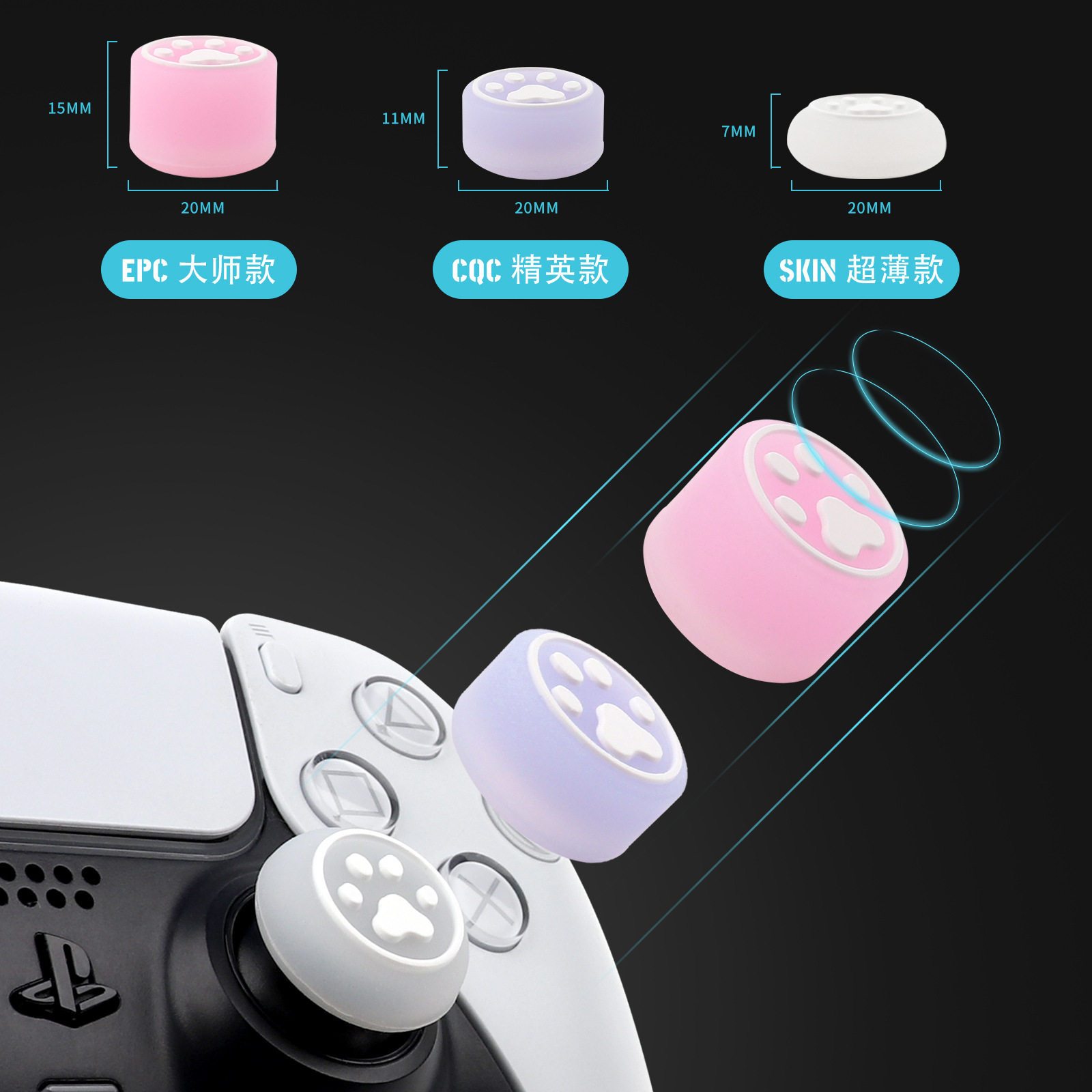 Ps5/Ps4/Swithc2 Game Controller Rocker Cover Xboxones Silicone Cap Xsx Cat Feet Heightened 6 Pack