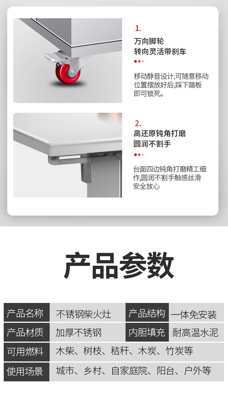 Household thickened 304 stainless steel firewood stove firewood stove indoor outdoor stove clay stove large iron pot stove firewood