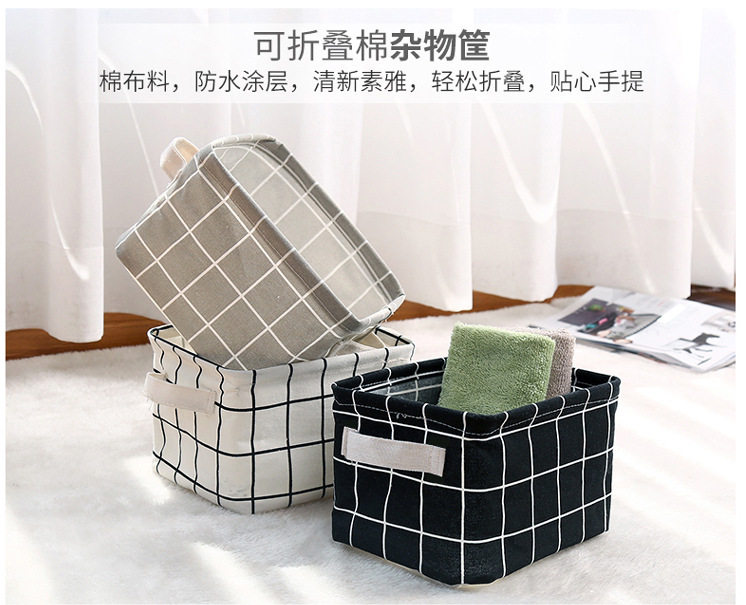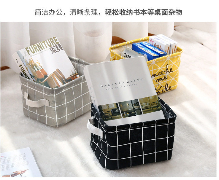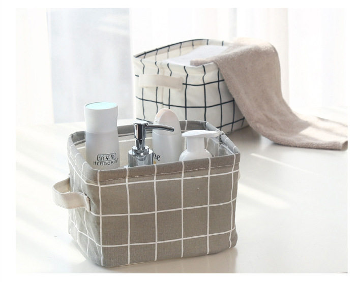 Fabric Cotton and Linen Storage Small Square Box Desktop Miscellaneous Storage Basket Organizer Portable Storage Basket Organizer Grid