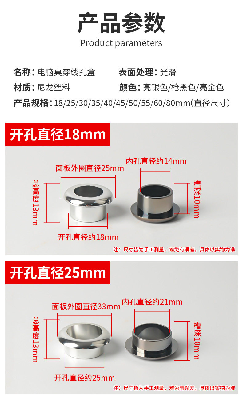 Nylon Round Wire Box Finishing Hole Cover Computer Desktop Wire Box Office Desk Wire Hole Furniture Hardware Accessories