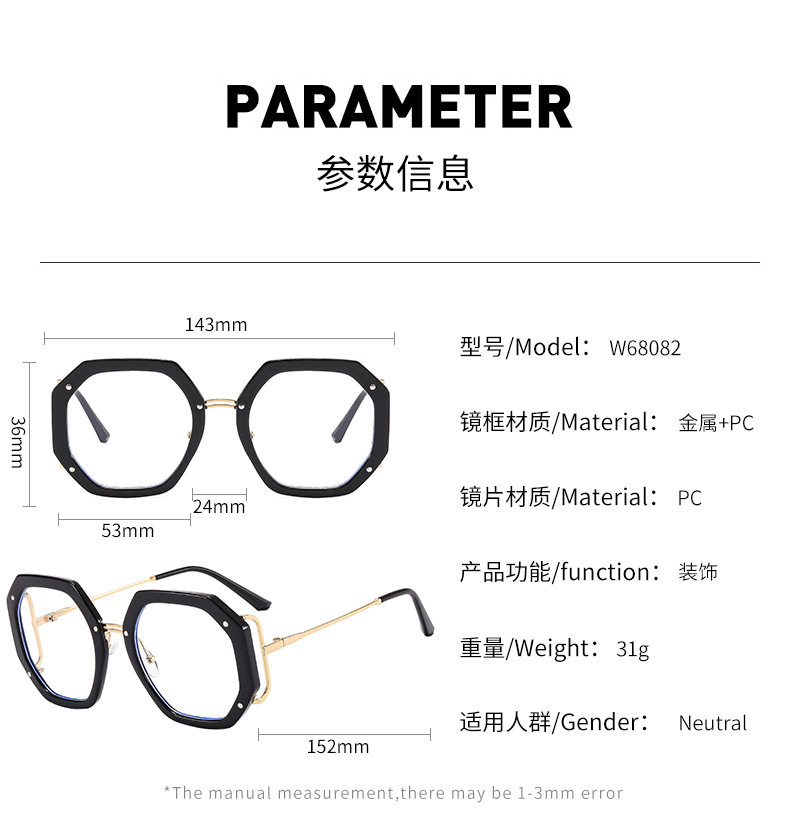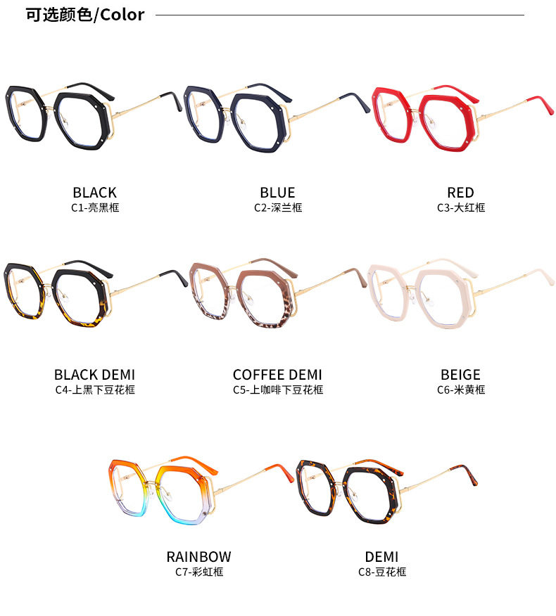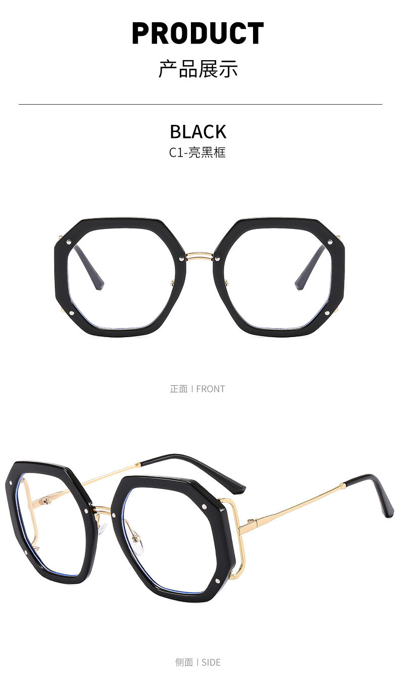 European and American Cross-border Anti-blue Glasses Women's Distinctive Polygon Frame Fashion Avant-garde Trendy Men's Instagram Flat Glasses