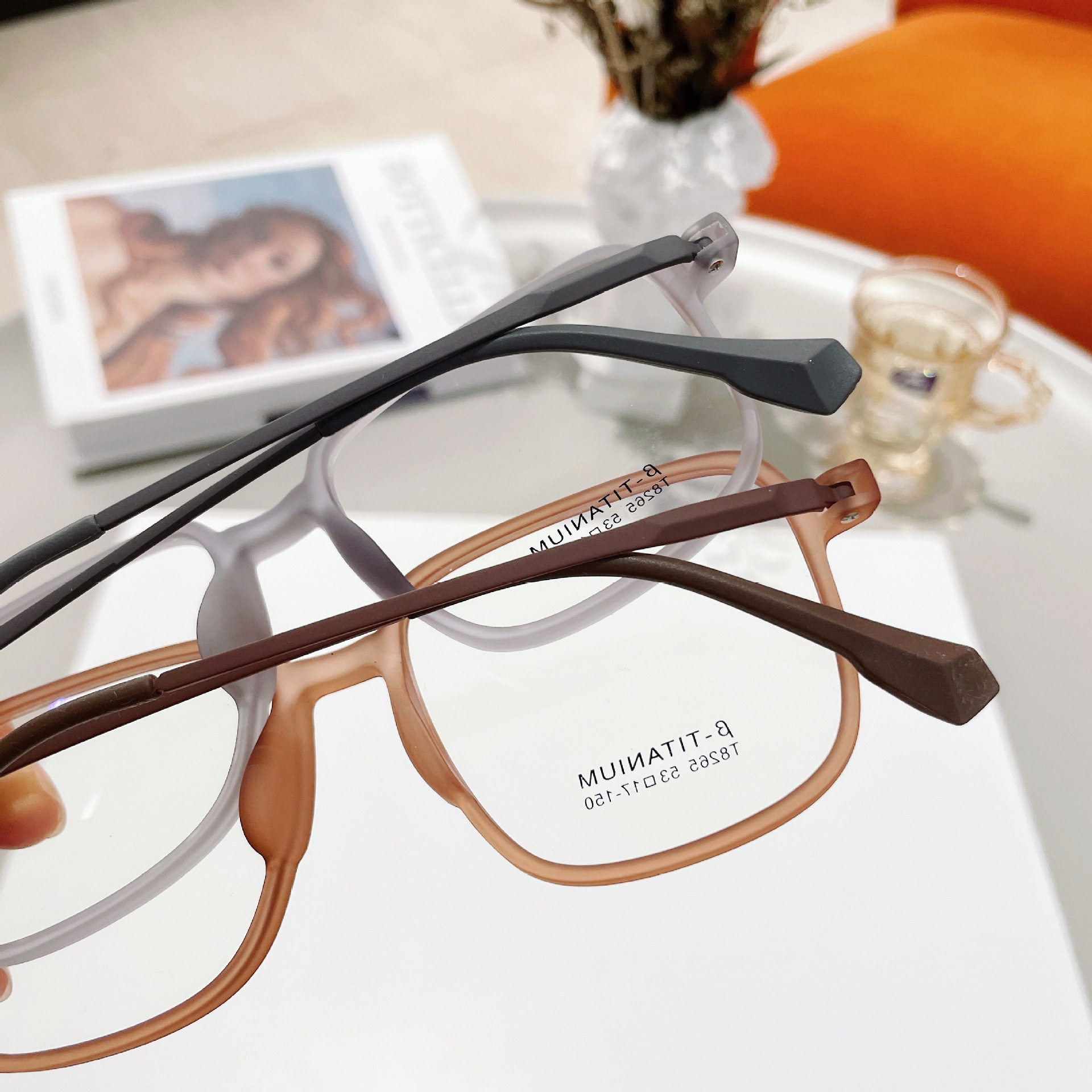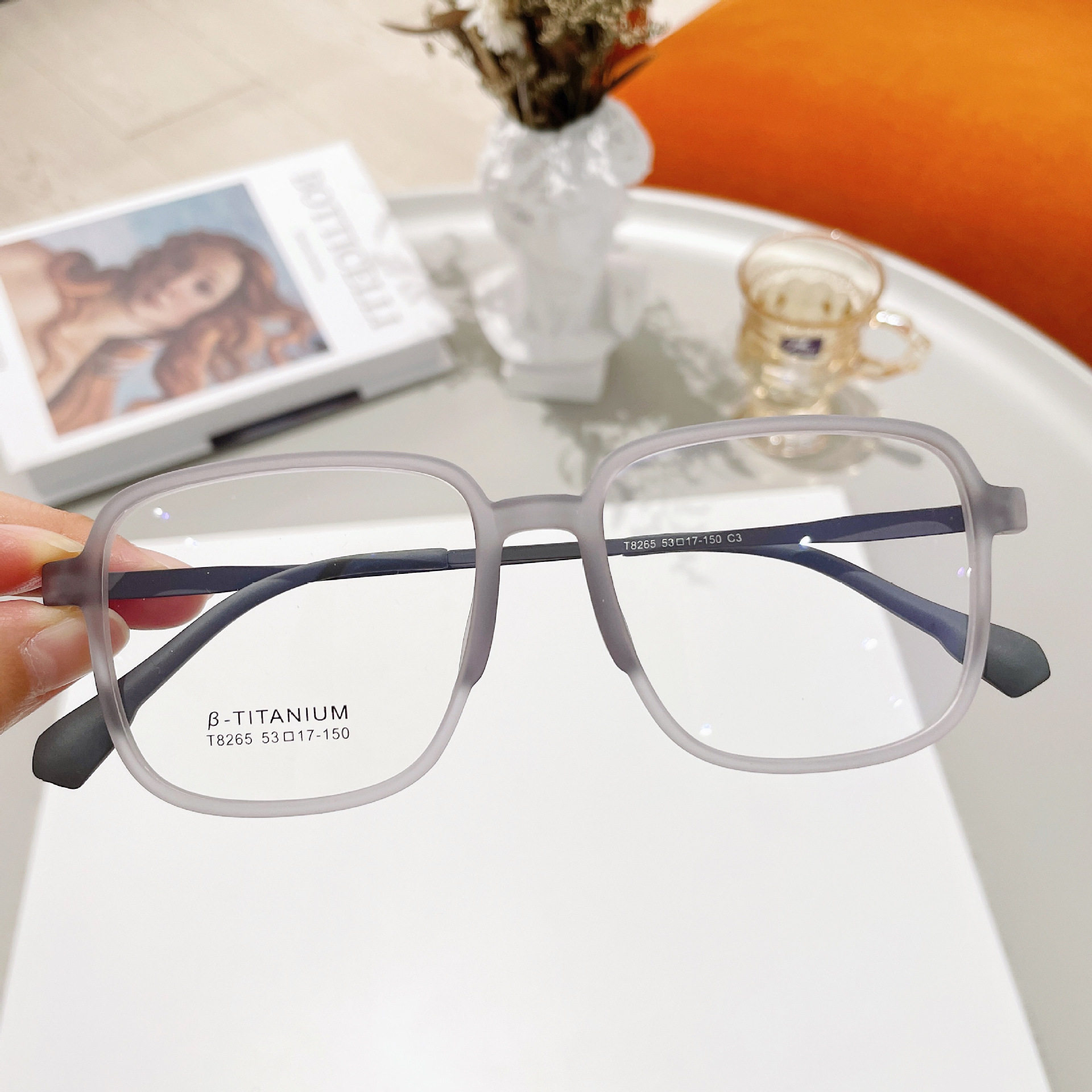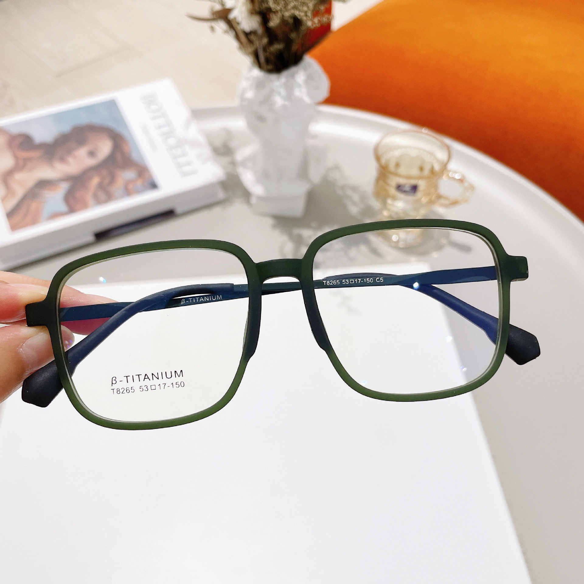 New Fashionable Square Ultra-Light Pure Titanium Glasses Frame Rubber Titanium Large Frame Myopia Glasses Men Wholesale 8265 Light Titanium