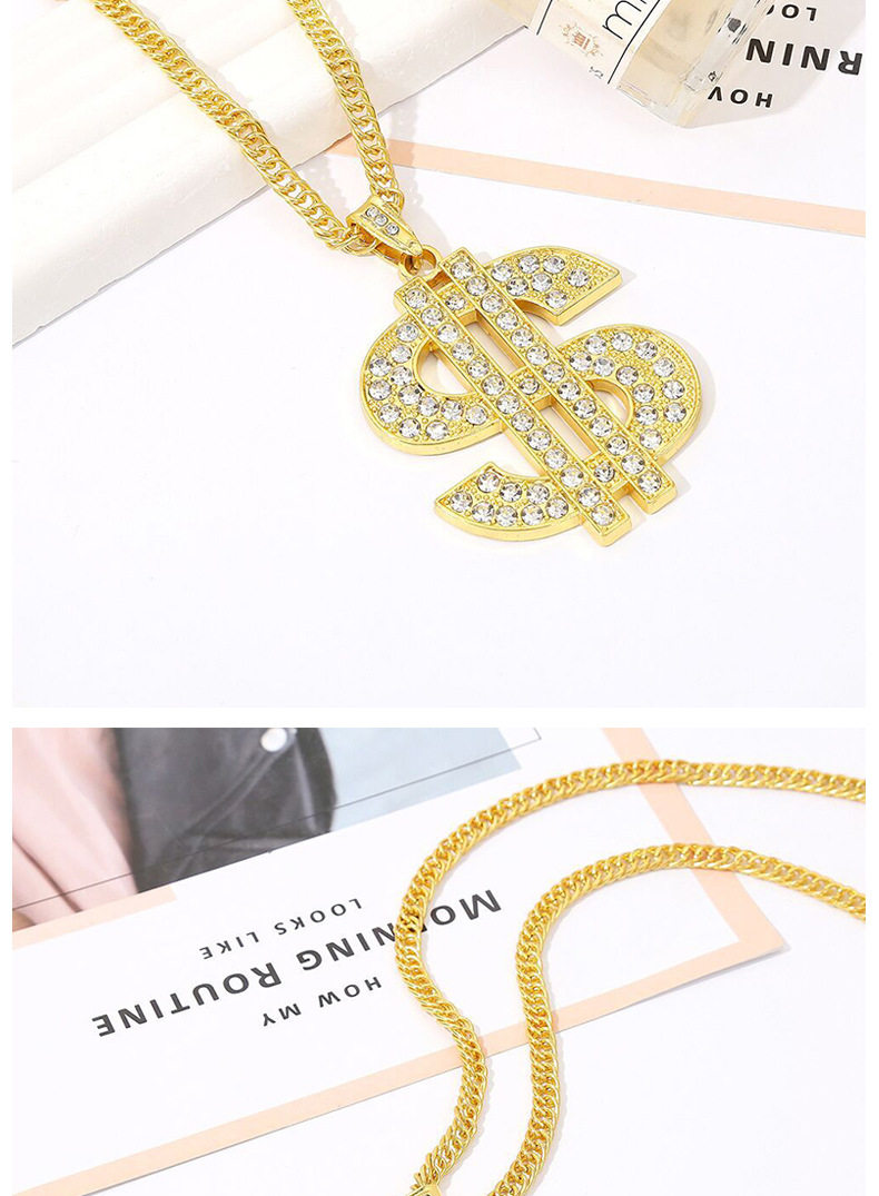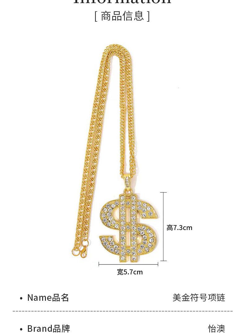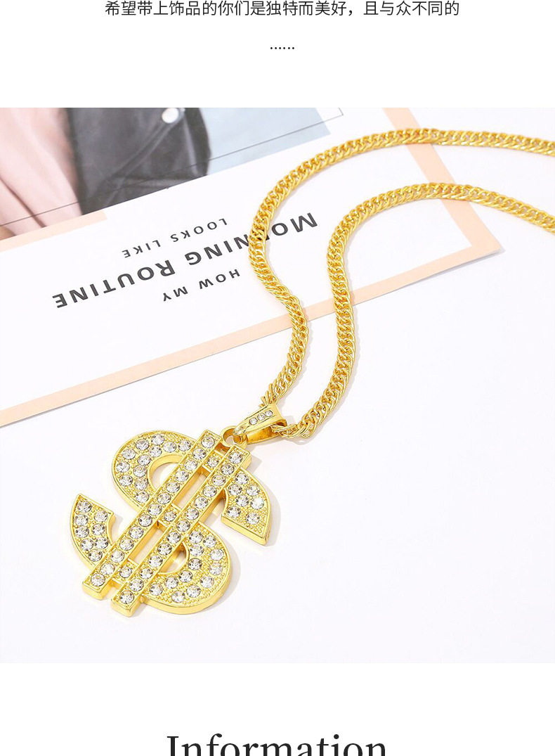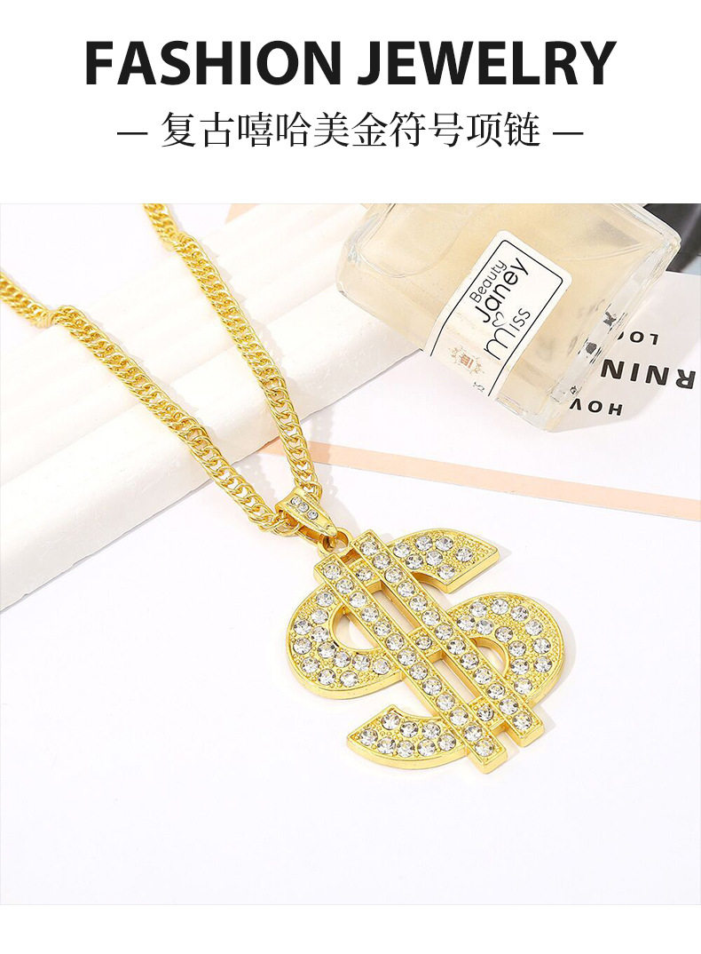 European and American cross-border jewelry retro hip-hop gold chain dollar symbol necklace men's and women's dollar symbol diamond pendant
