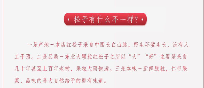 | Packaging specifications | Songzi wangsheng pine nuts 0.5kg ~special price for limited time sale,Medium-sized raw pine nuts 0.5kg ~ limited-time flash sale!,Large raw pine nuts 0.5kg ~ limited-time flash sale! |