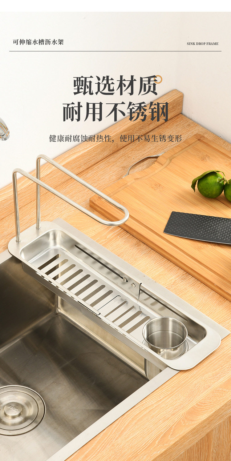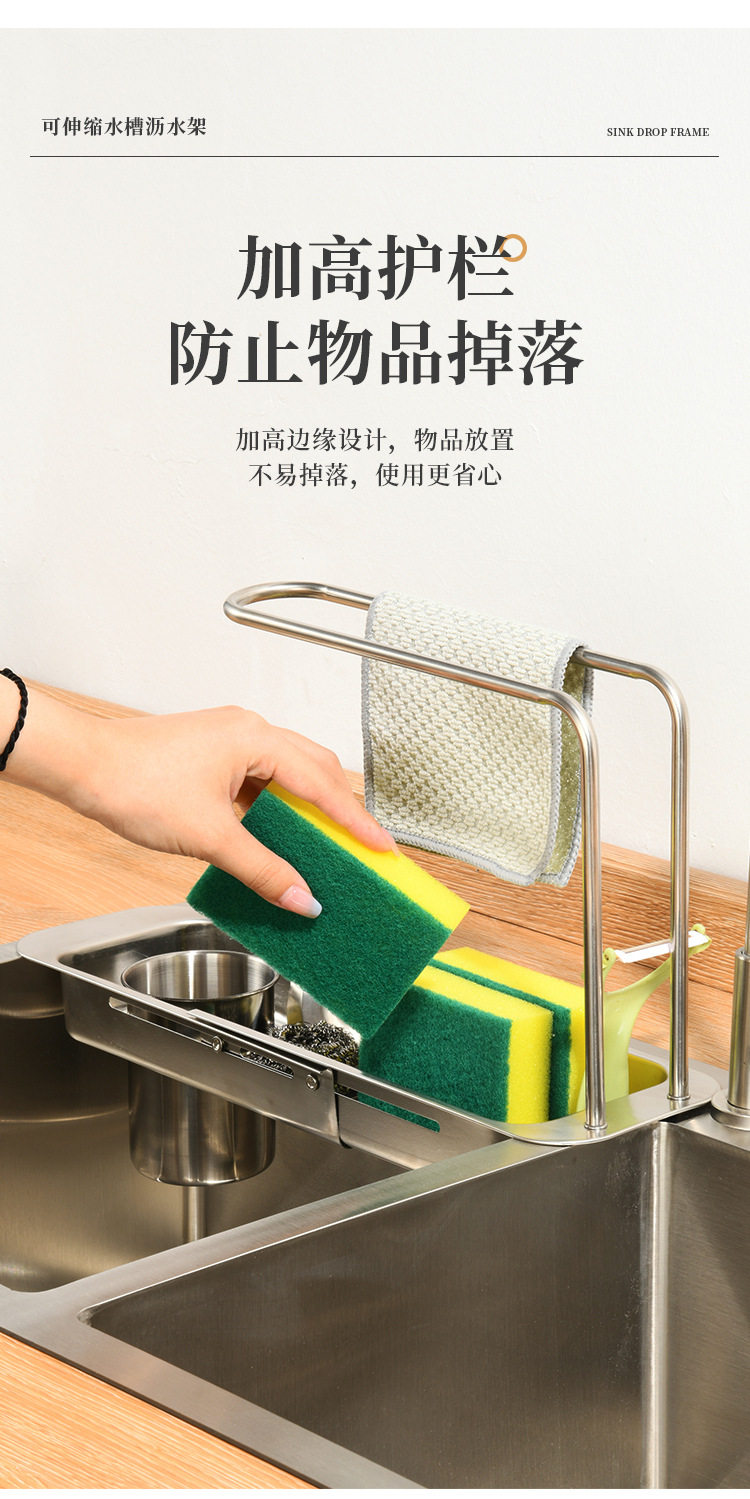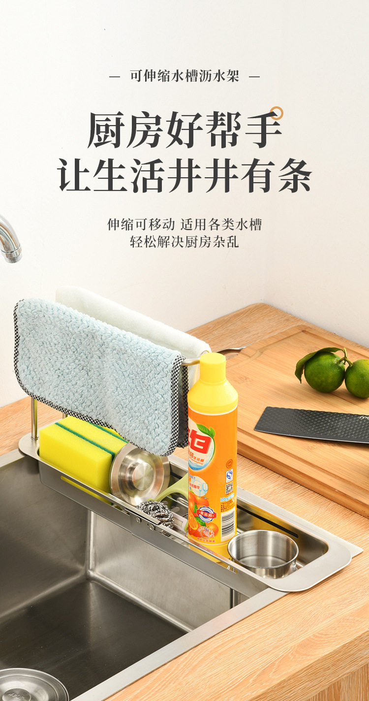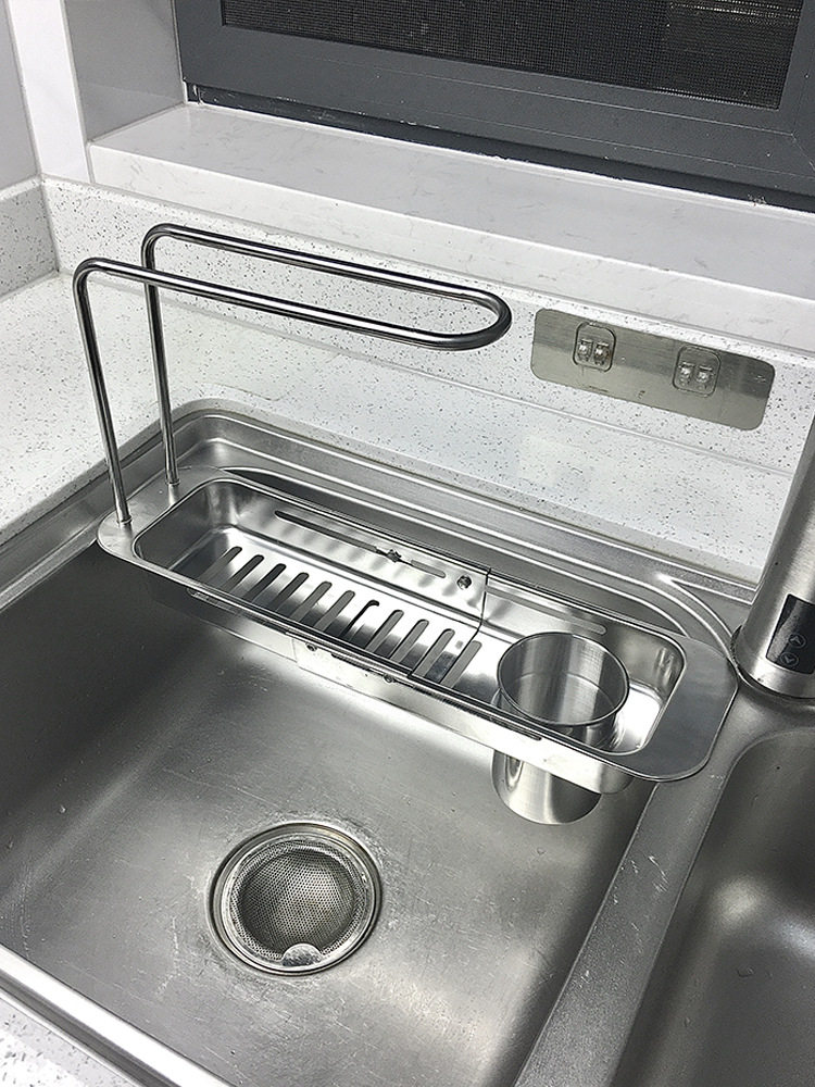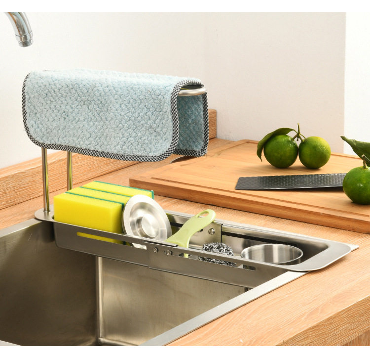 Stainless Steel Draining Basket Sink Sink Storage Telescopic Rack Kitchen Storage Rack Vegetable Basin Bowl Chopsticks Dish Cloth Filter Basket