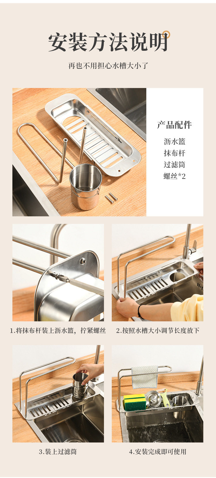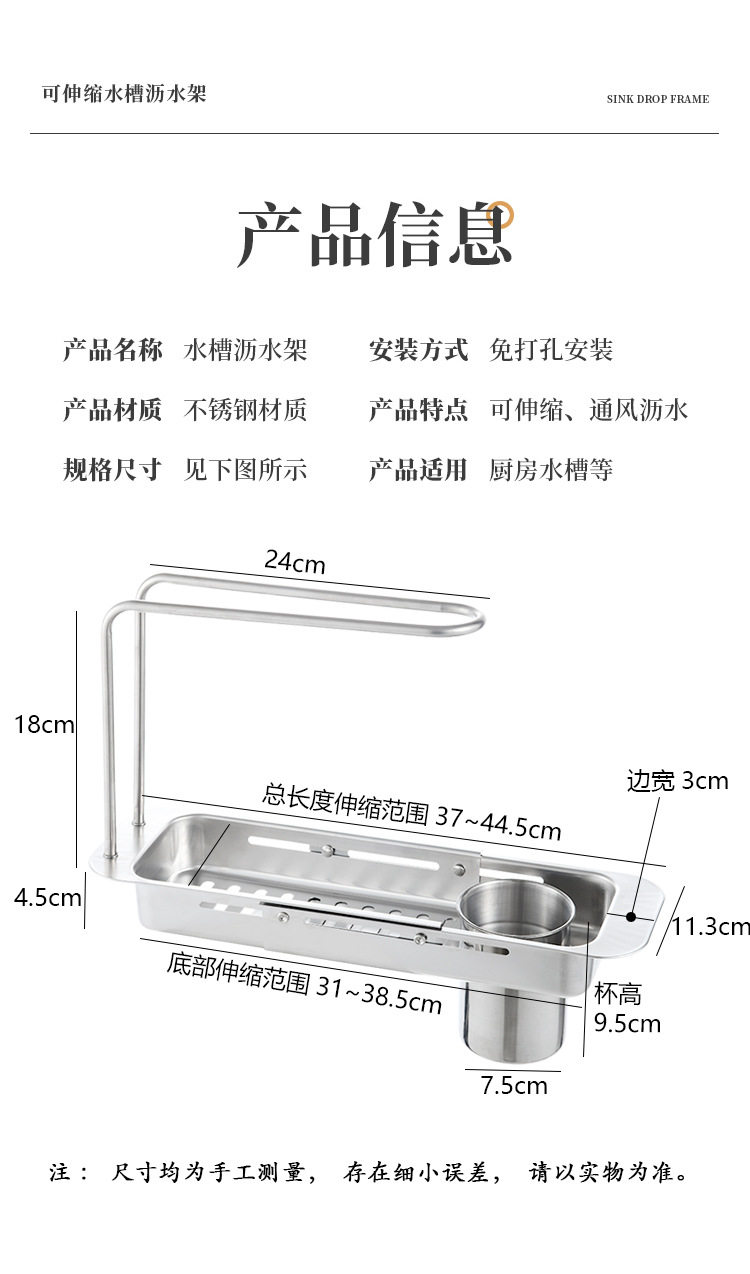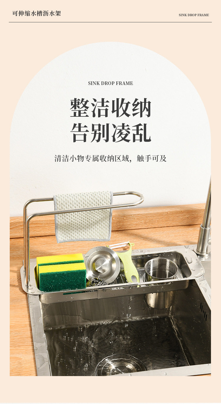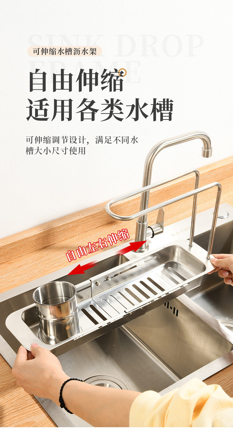 Stainless Steel Draining Basket Sink Sink Storage Telescopic Rack Kitchen Storage Rack Vegetable Basin Bowl Chopsticks Dish Cloth Filter Basket