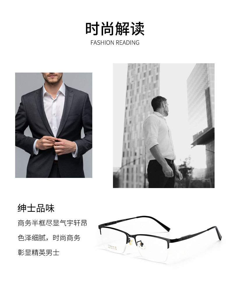 Popular Classic Business Pure Titanium Half-Rim Glasses Frame with Slim Design, Fashionable and Comfortable, Can Be Equipped with Myopia Glasses Frame 0205