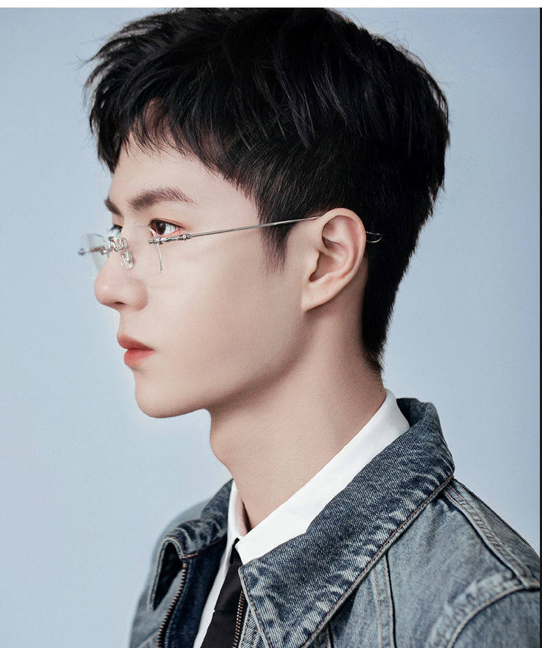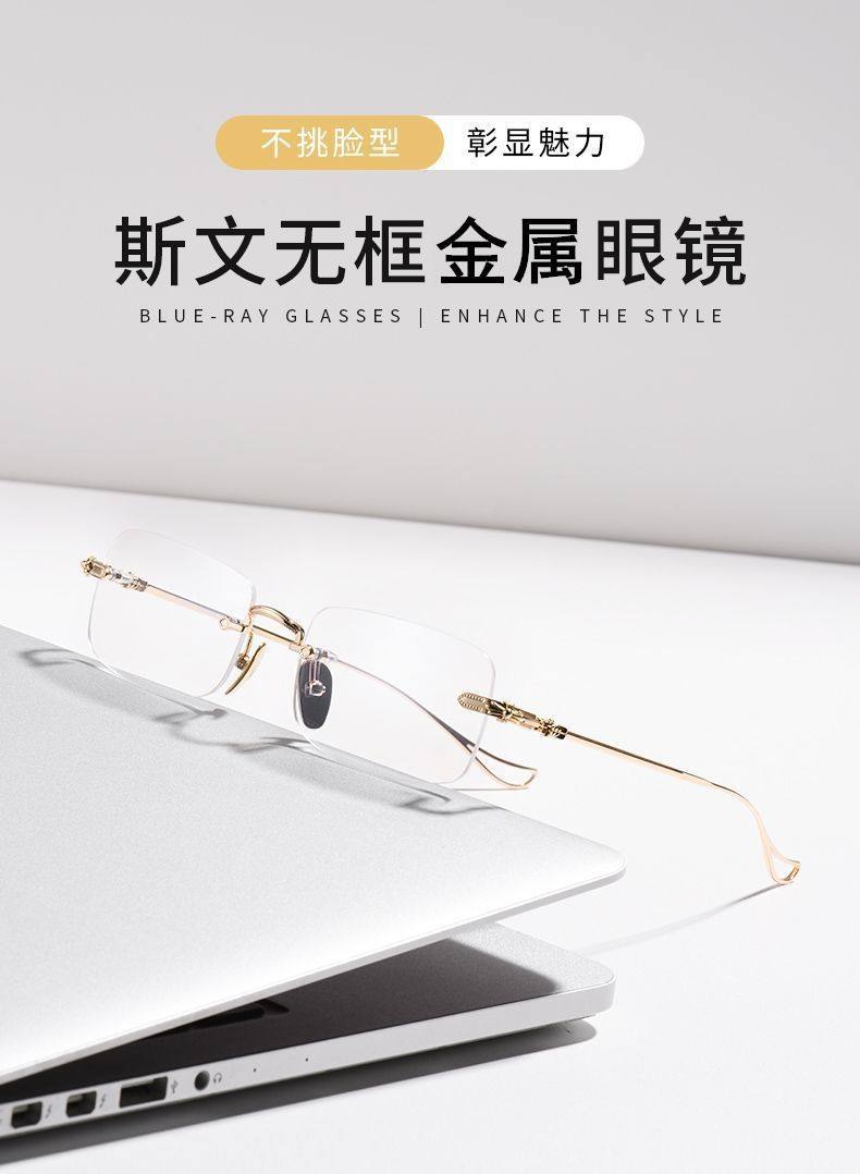Rimless Glasses, Trendy Men's Color-Changing Myopia Eye Frames, Ultra-Light, Can Be Equipped with Prescription Glasses, Men's Anti-Blue Light