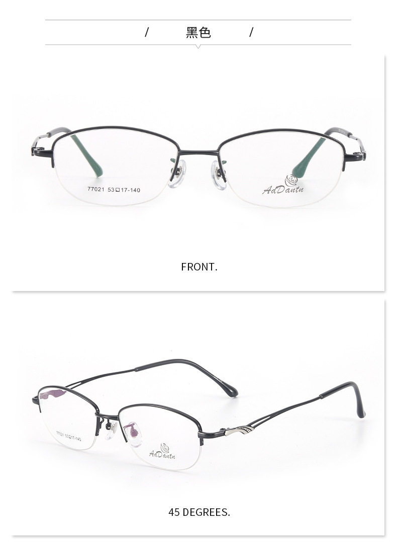 Metal glasses frame two-color half-frame myopia 77021 middle-aged ladies business glasses frame Danyang manufacturers wholesale