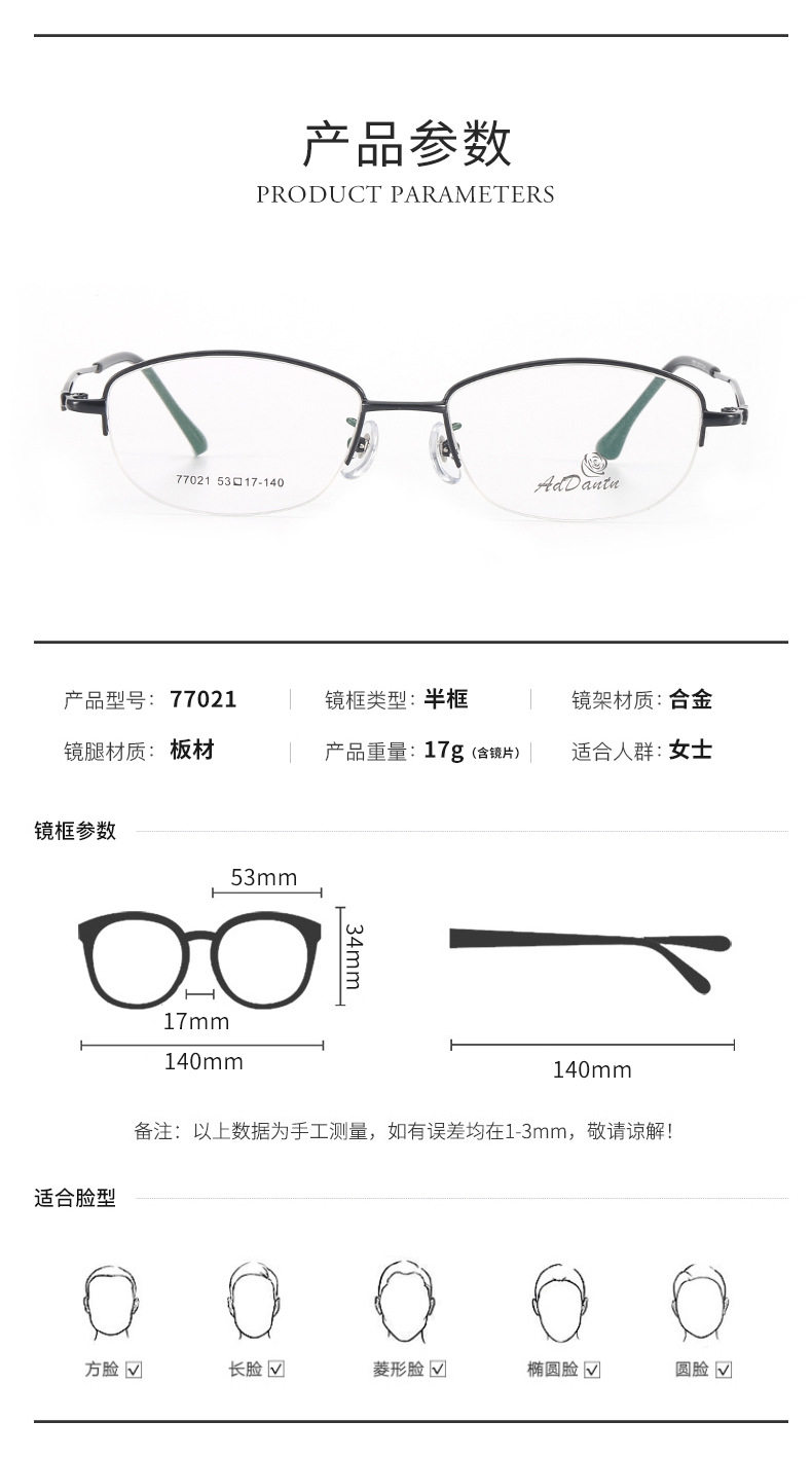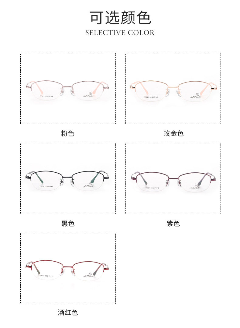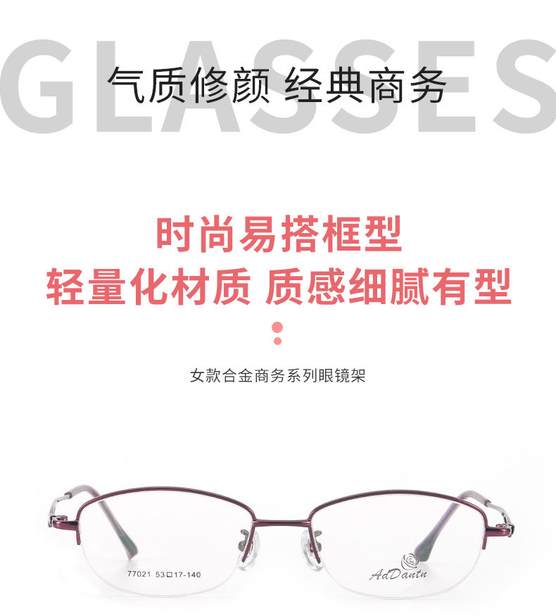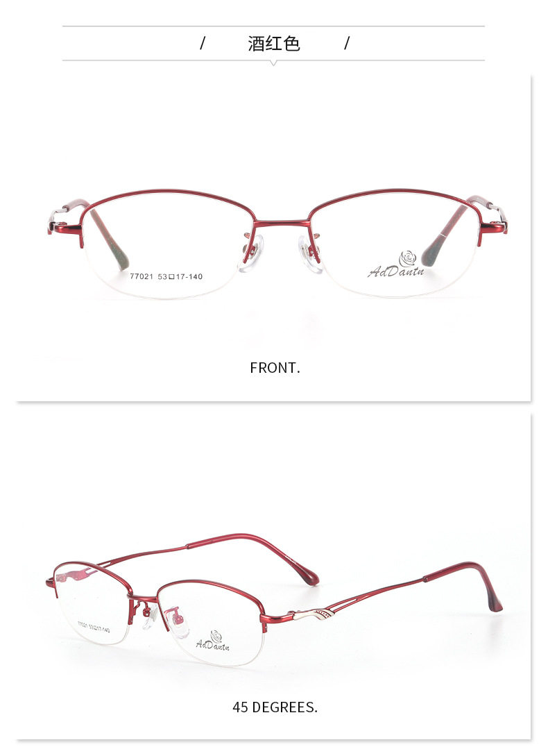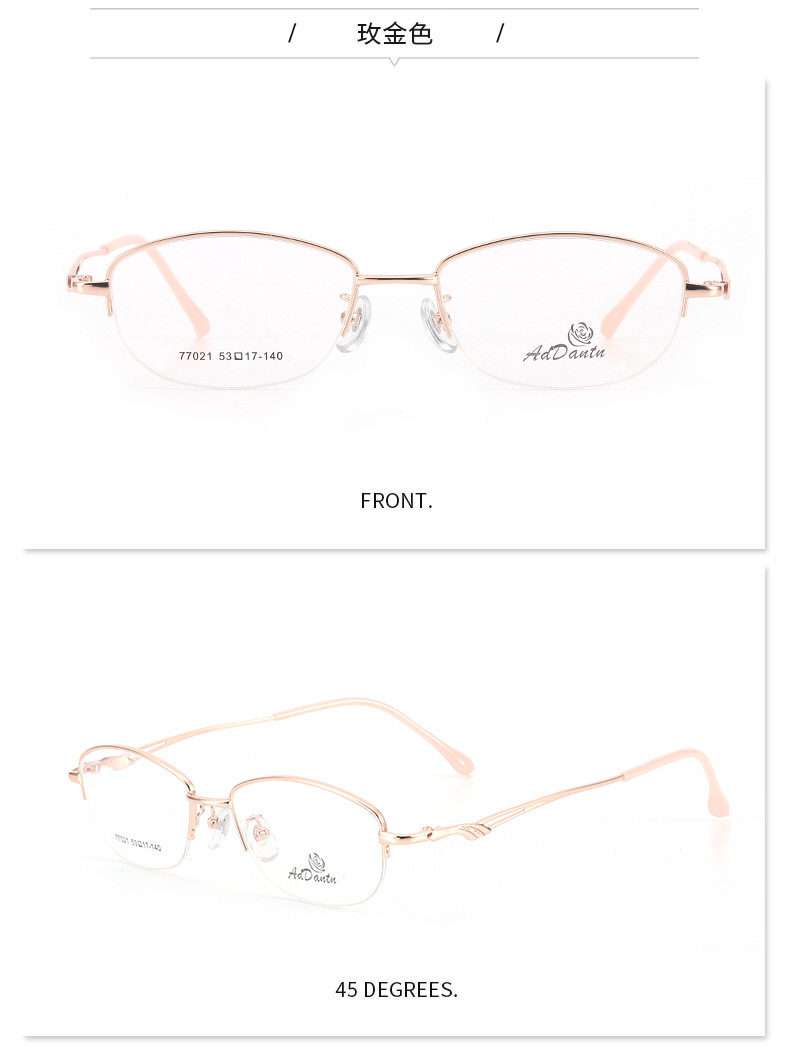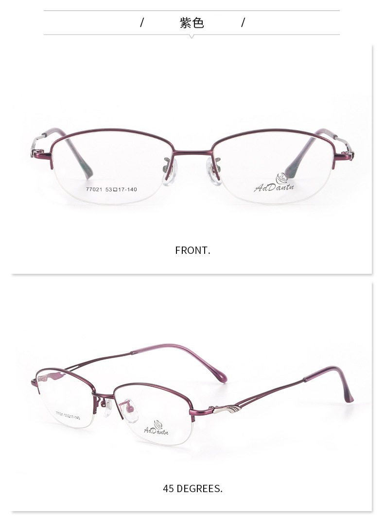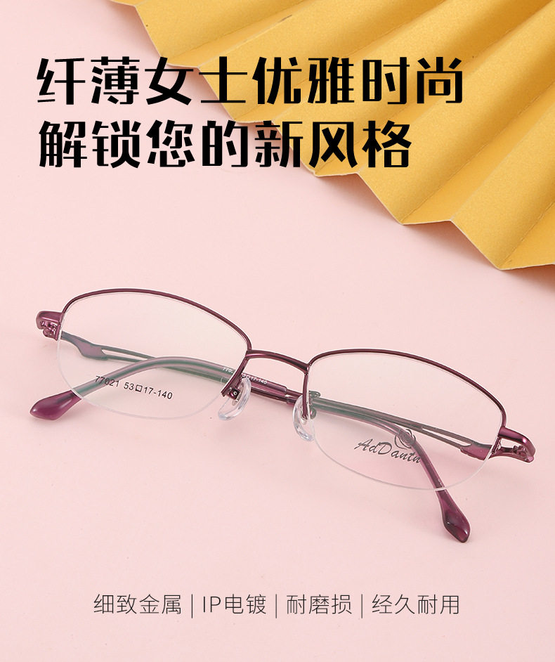 Metal glasses frame two-color half-frame myopia 77021 middle-aged ladies business glasses frame Danyang manufacturers wholesale
