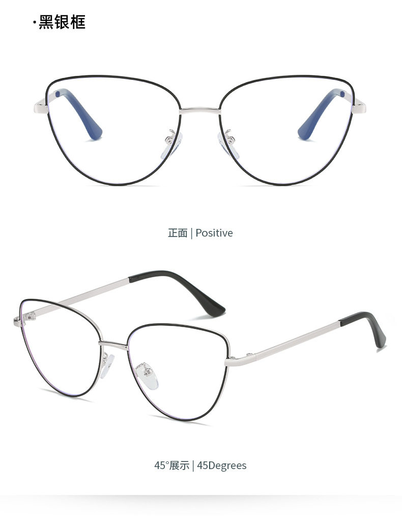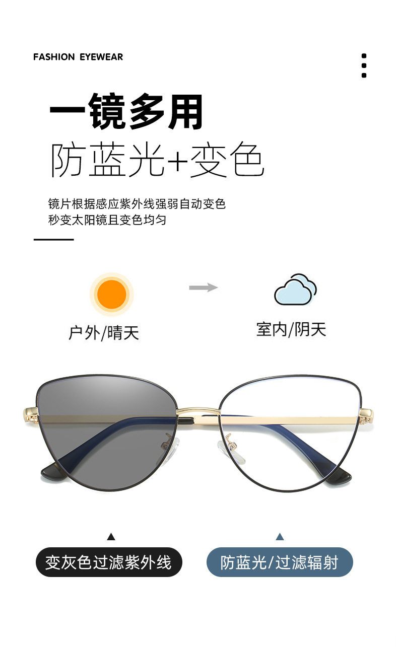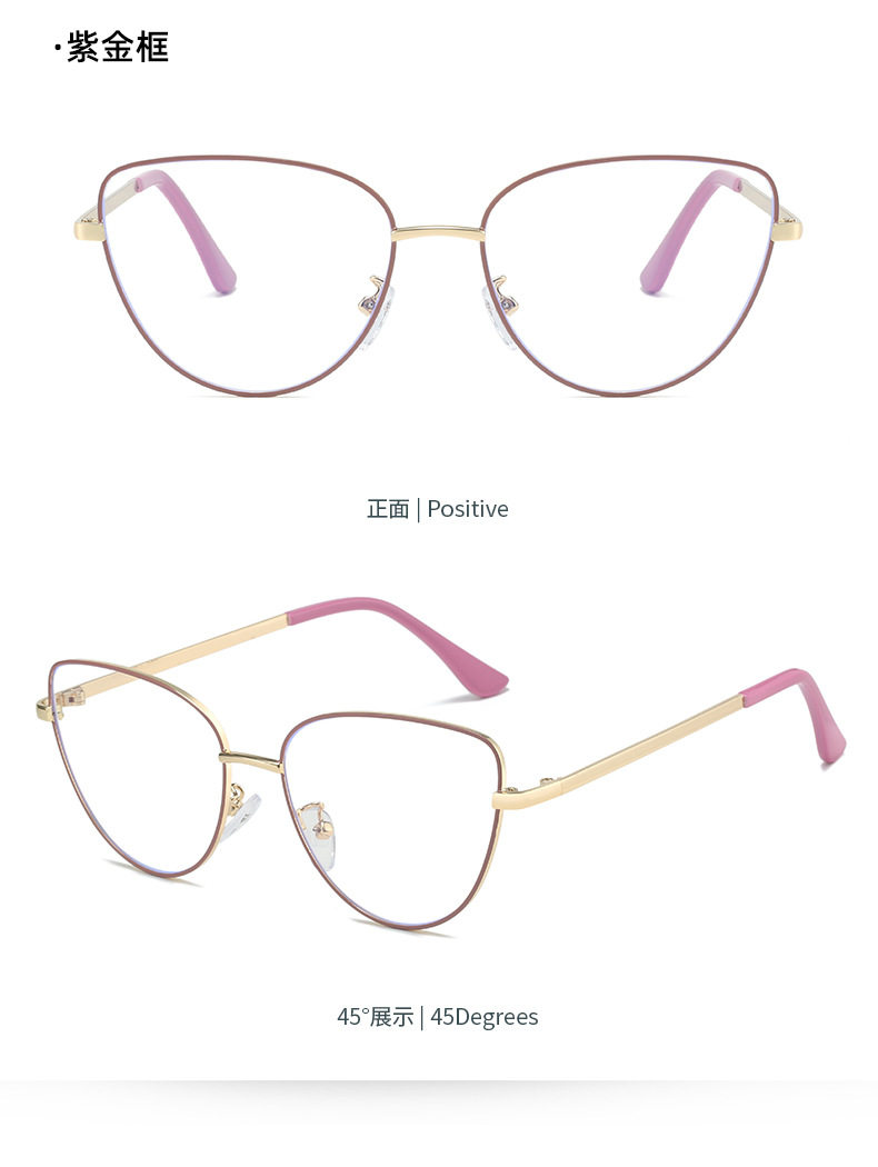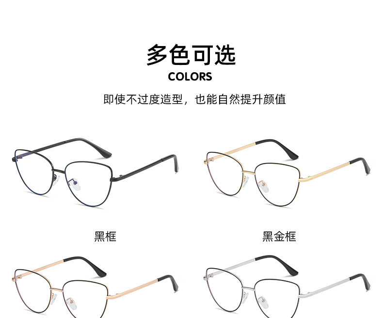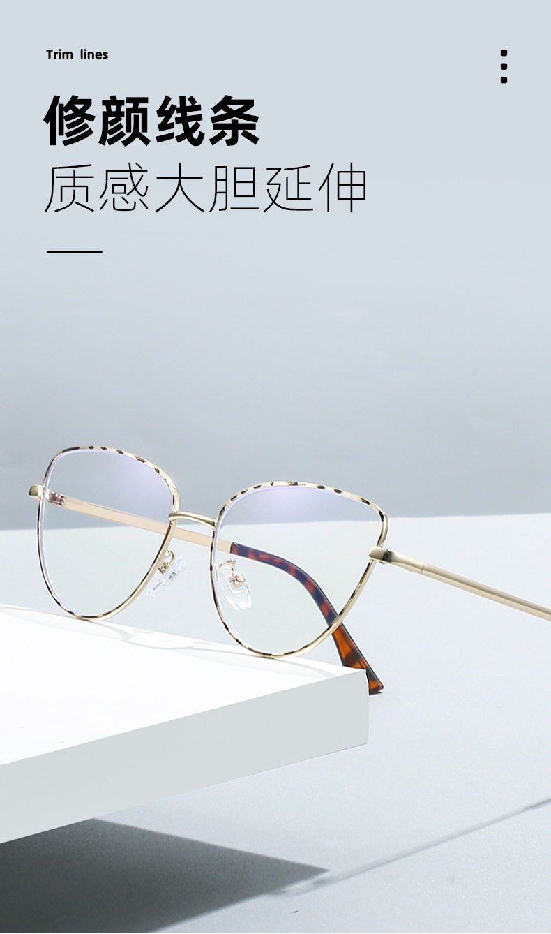 Retro European and American Cat-Eye Large-Frame Metal Color-Changing Glasses Frame Fashionable Plain Face Big Face Xiangyun Anti-Blue Light Flat Mirror