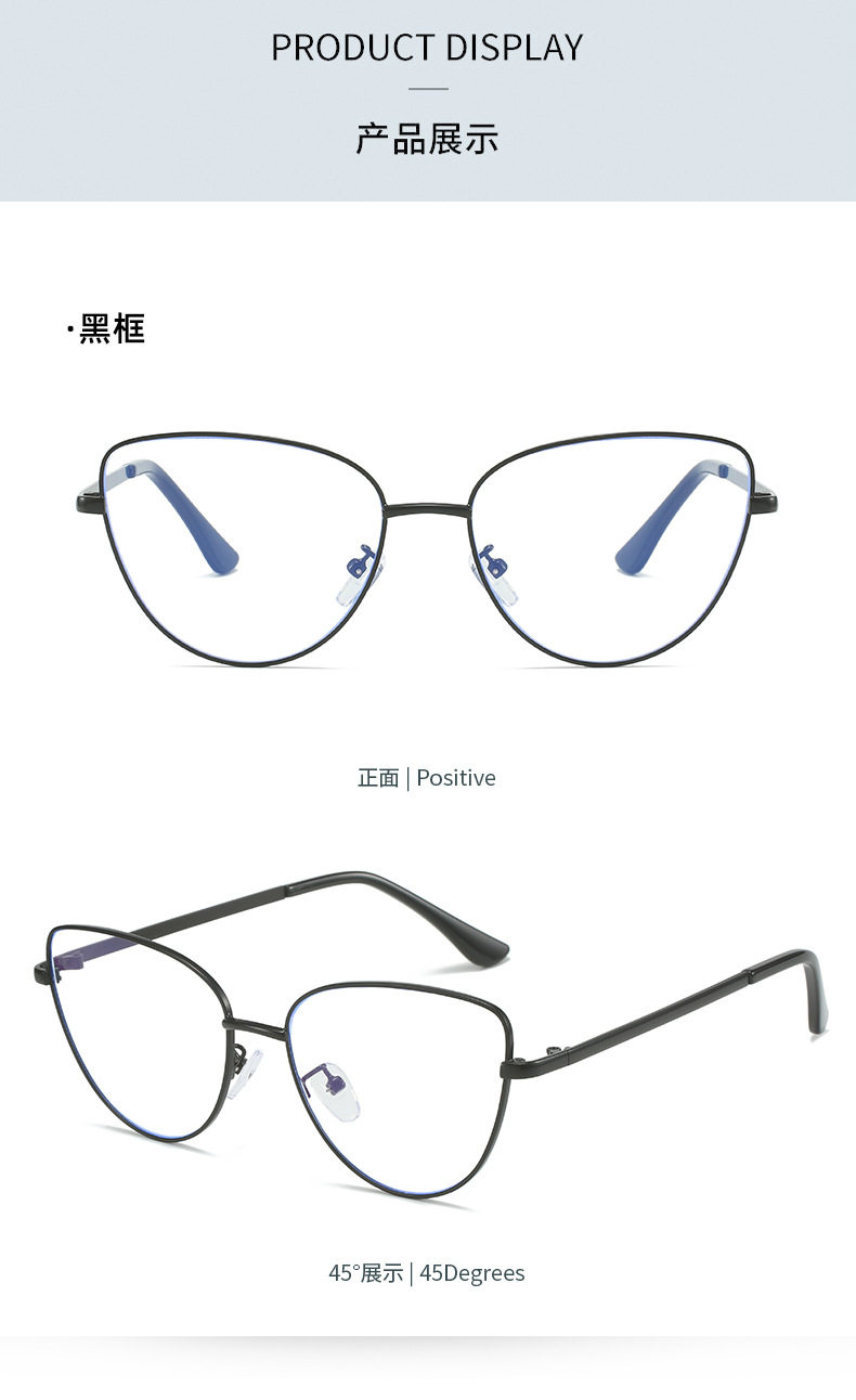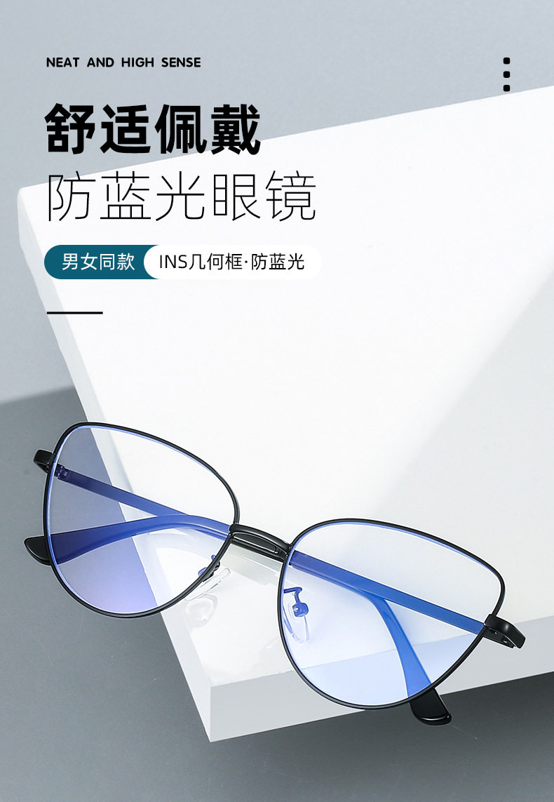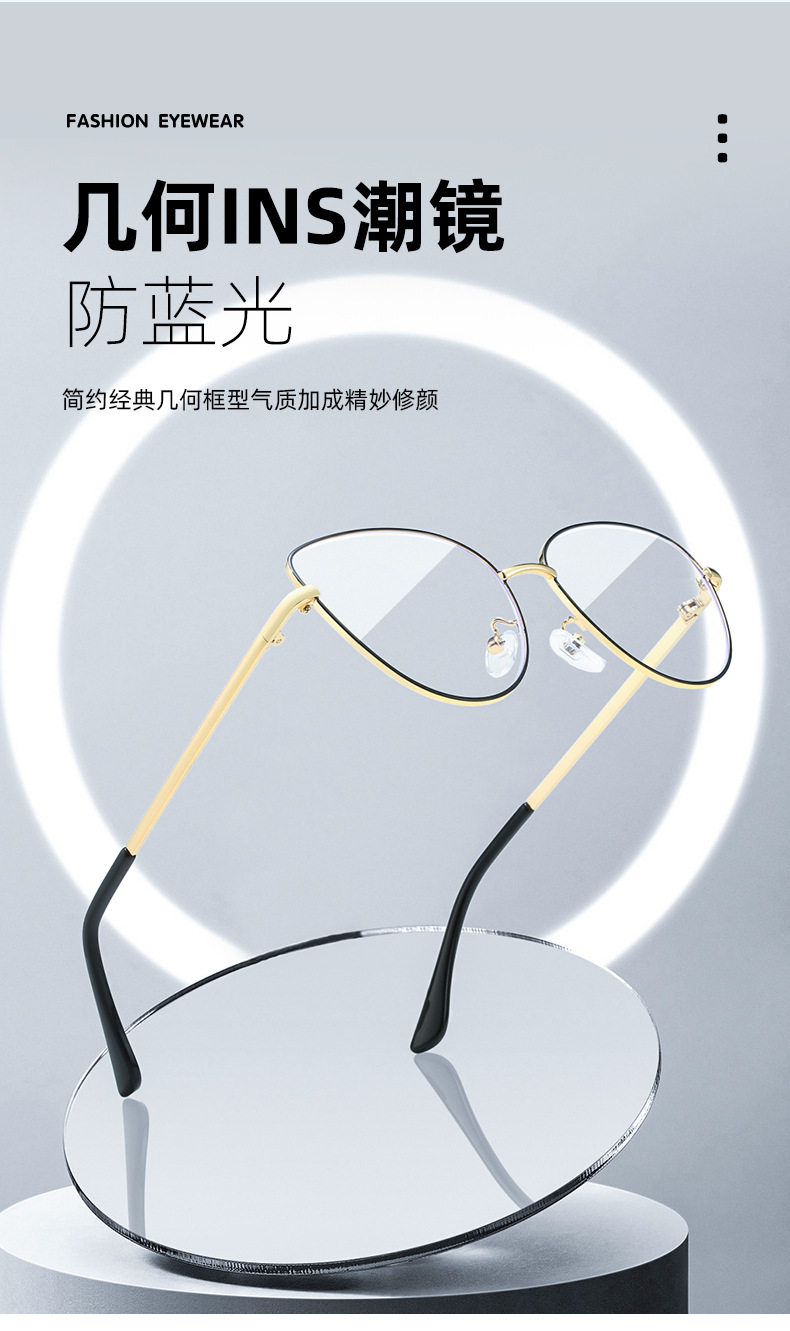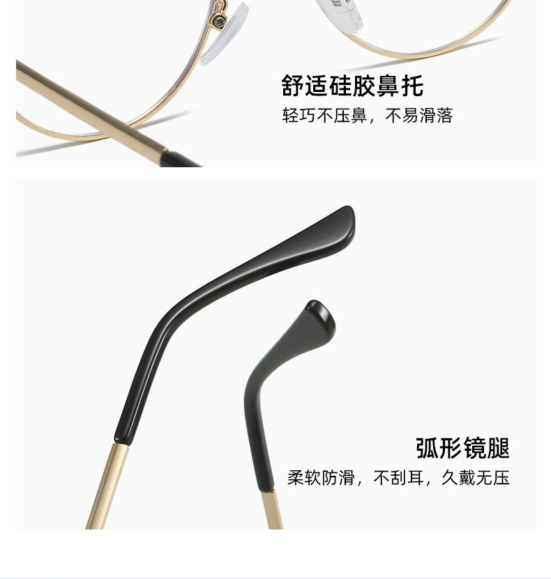 Retro European and American Cat-Eye Large-Frame Metal Color-Changing Glasses Frame Fashionable Plain Face Big Face Xiangyun Anti-Blue Light Flat Mirror