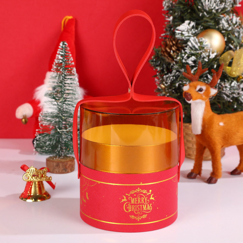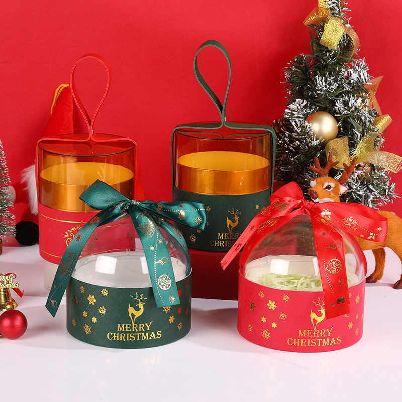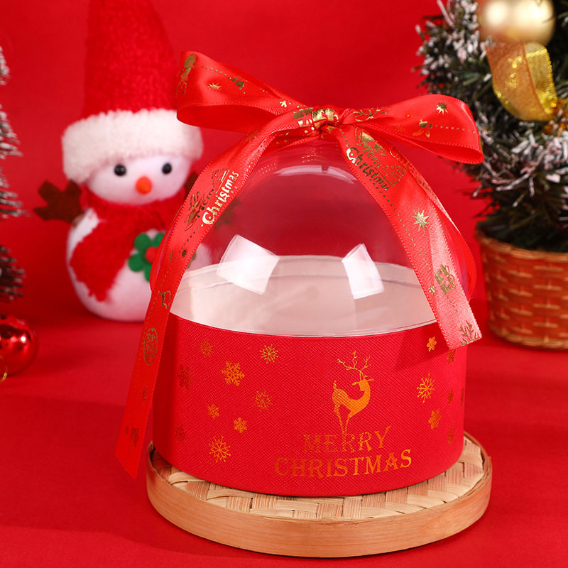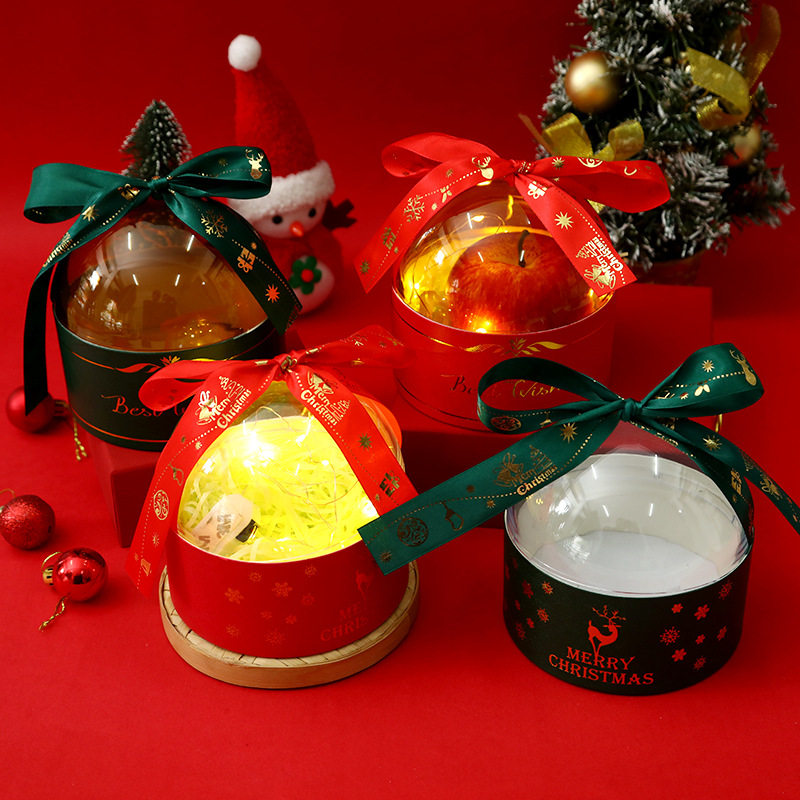 2025 New Gold-Stamped Semi-Circular Transparent Christmas Apple Hug Bucket Christmas Gift Box Christmas Apple Box