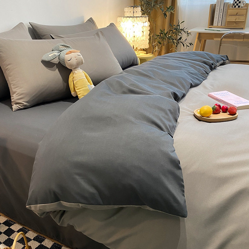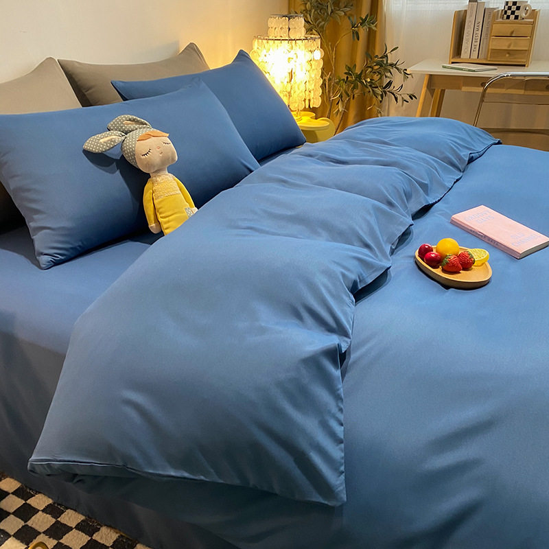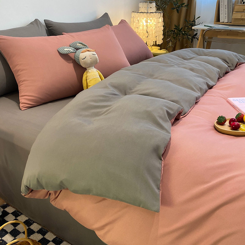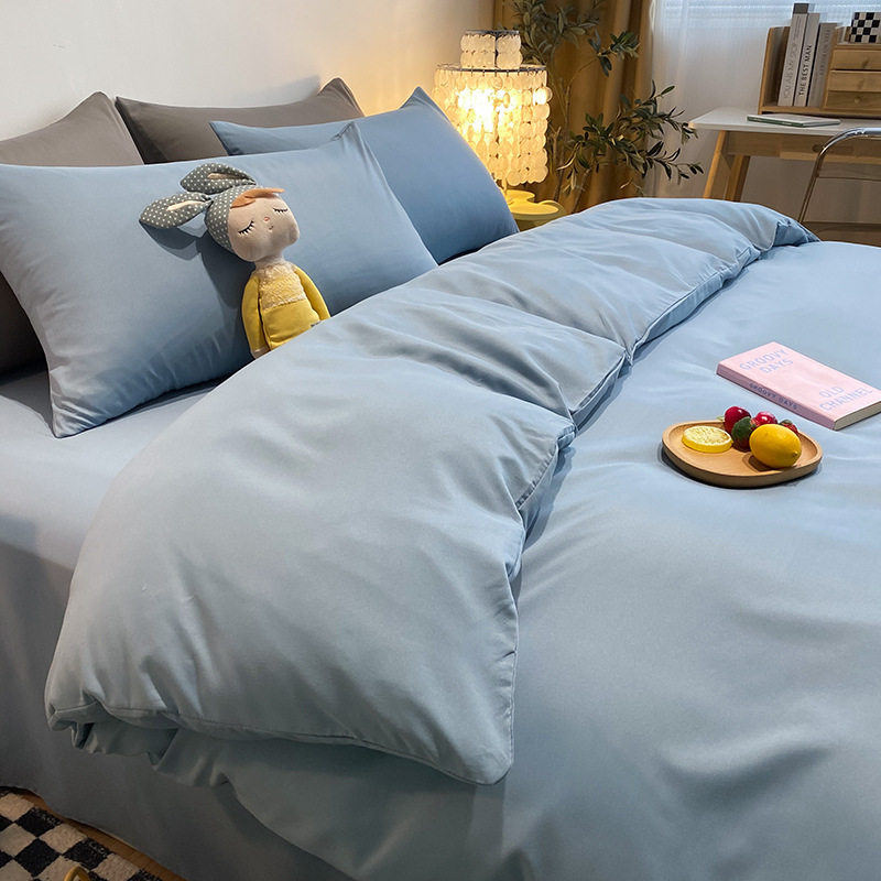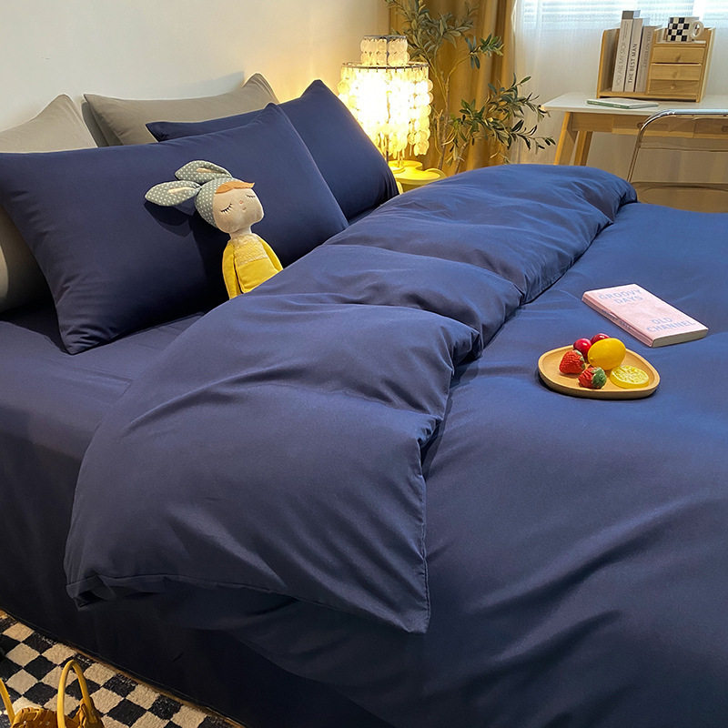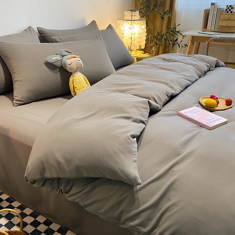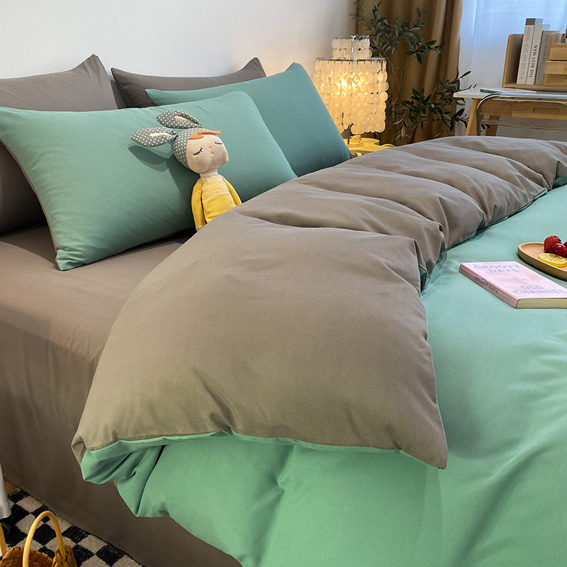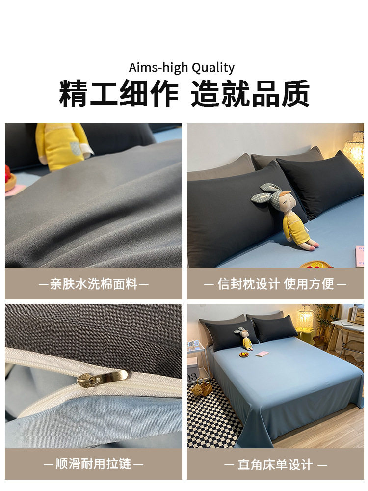 Four-Piece Set of Pure Color Washed Cotton Bed Sheetss, Quilt Cover, Brushed Bedding, Student Dormitory Single Bed Three-Piece Set, Normcore