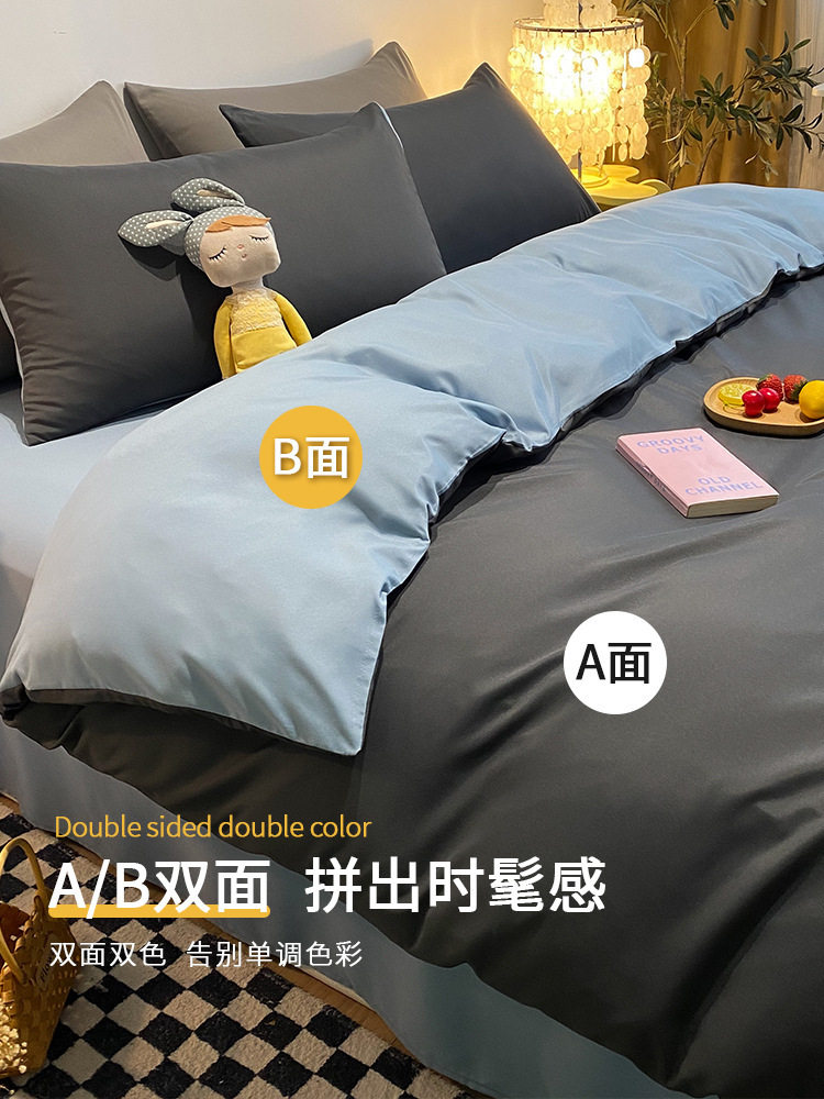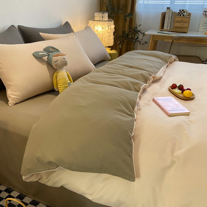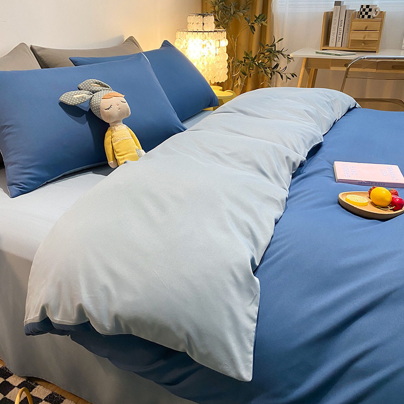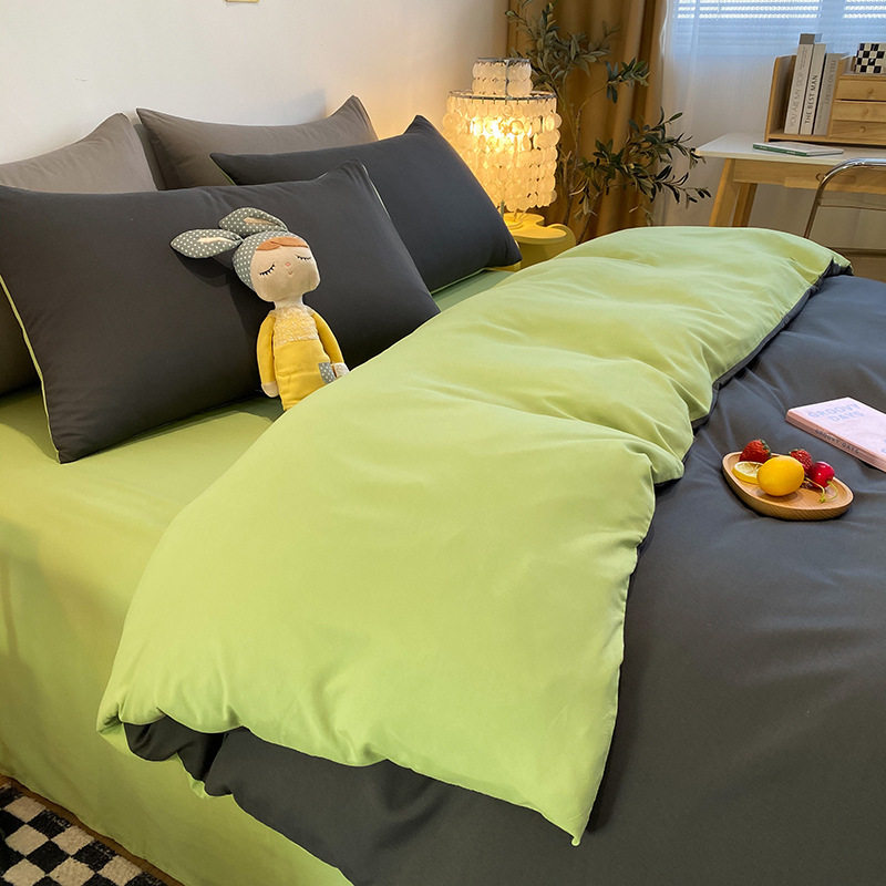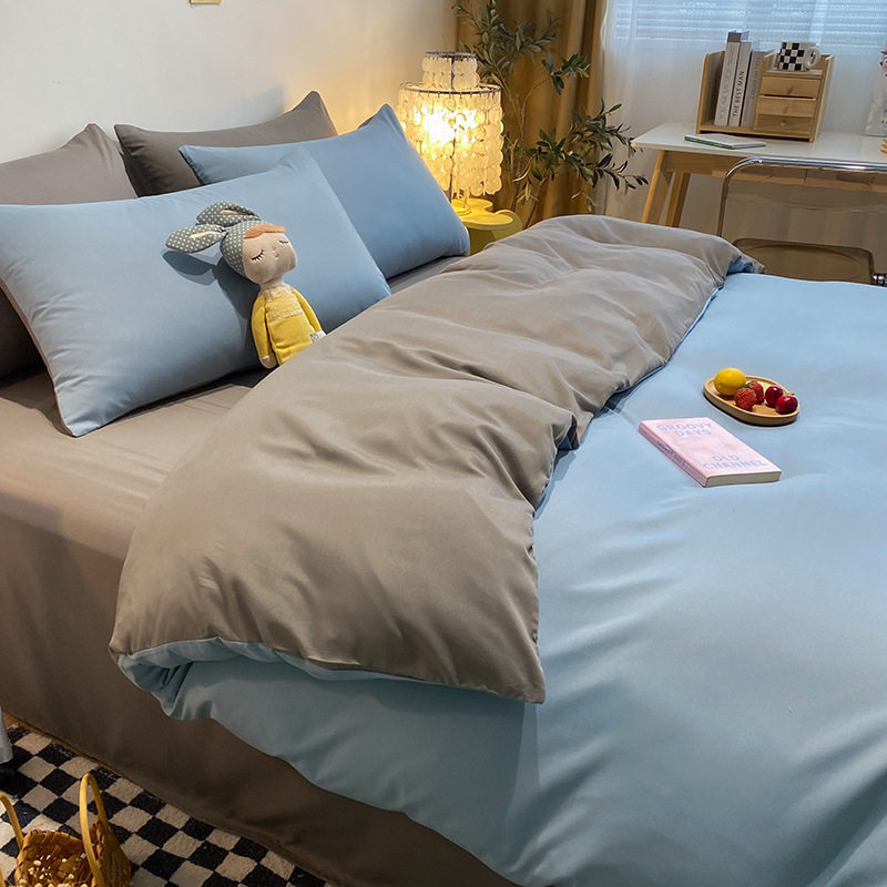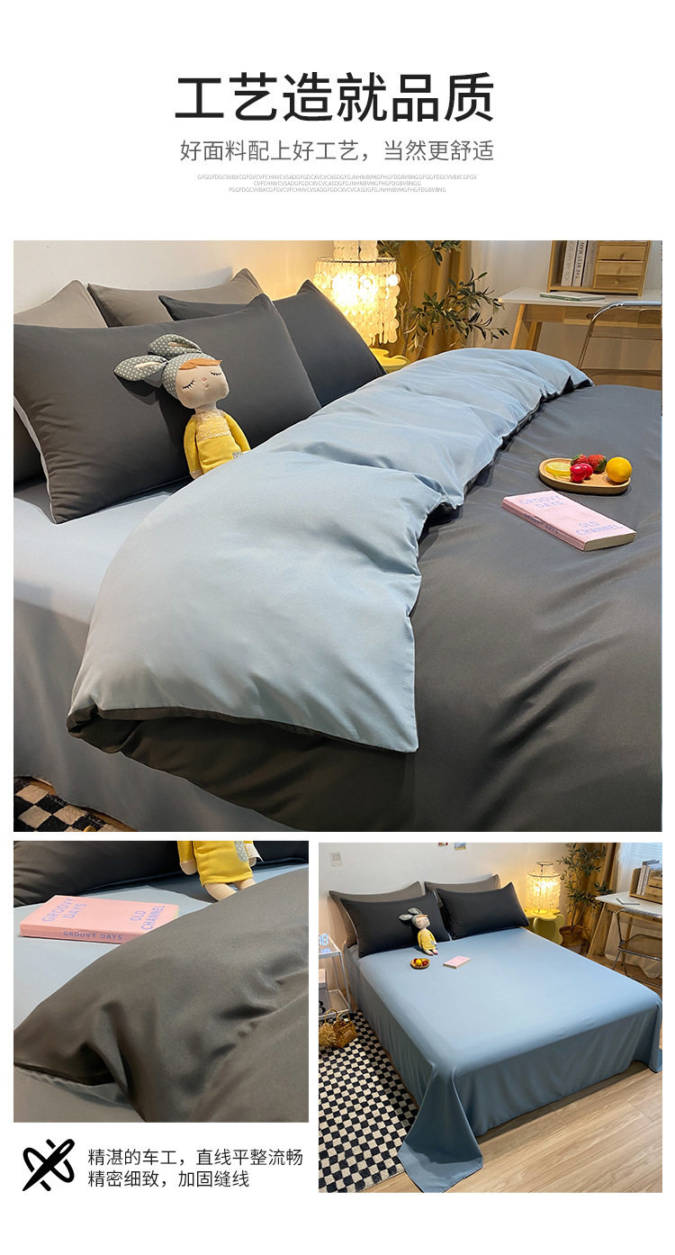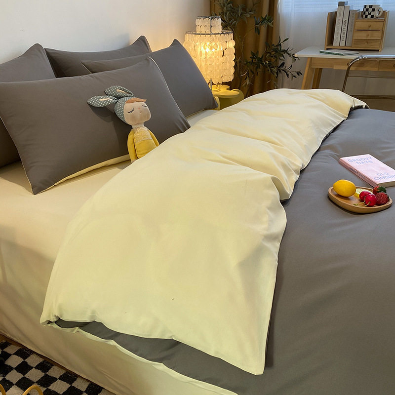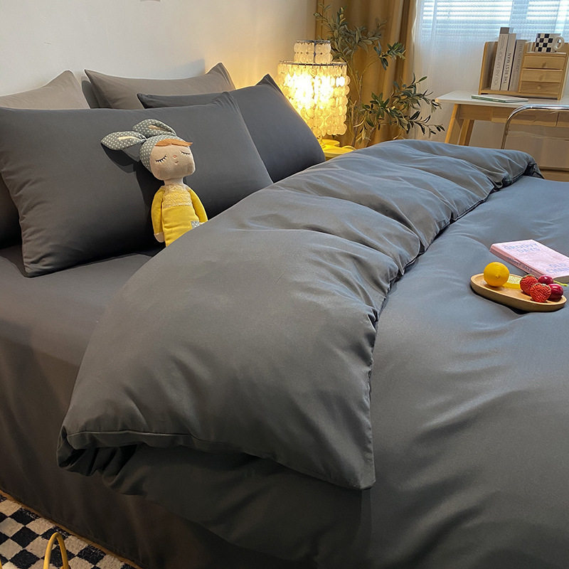 Four-Piece Set of Pure Color Washed Cotton Bed Sheetss, Quilt Cover, Brushed Bedding, Student Dormitory Single Bed Three-Piece Set, Normcore