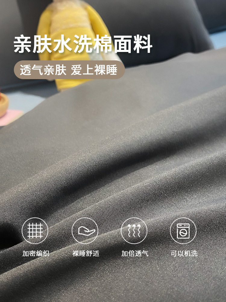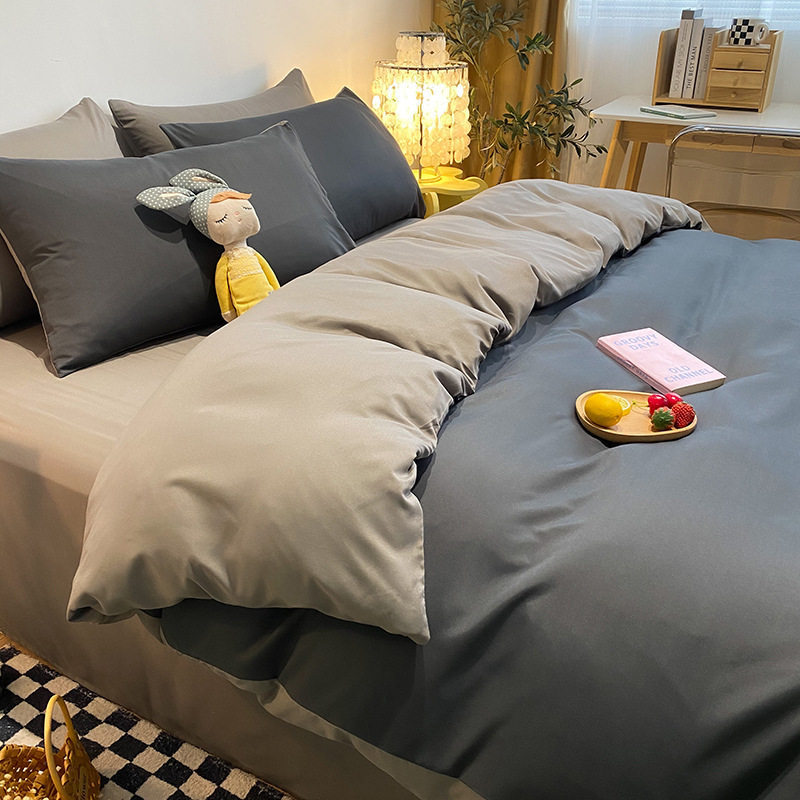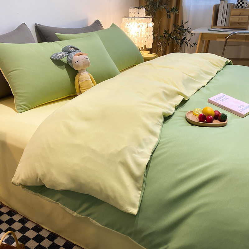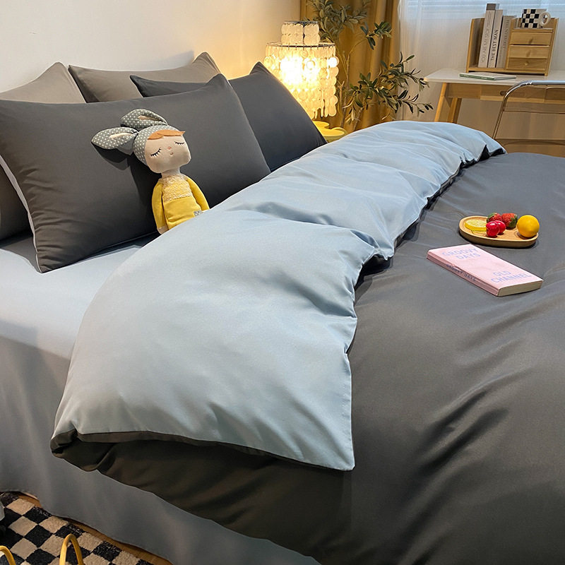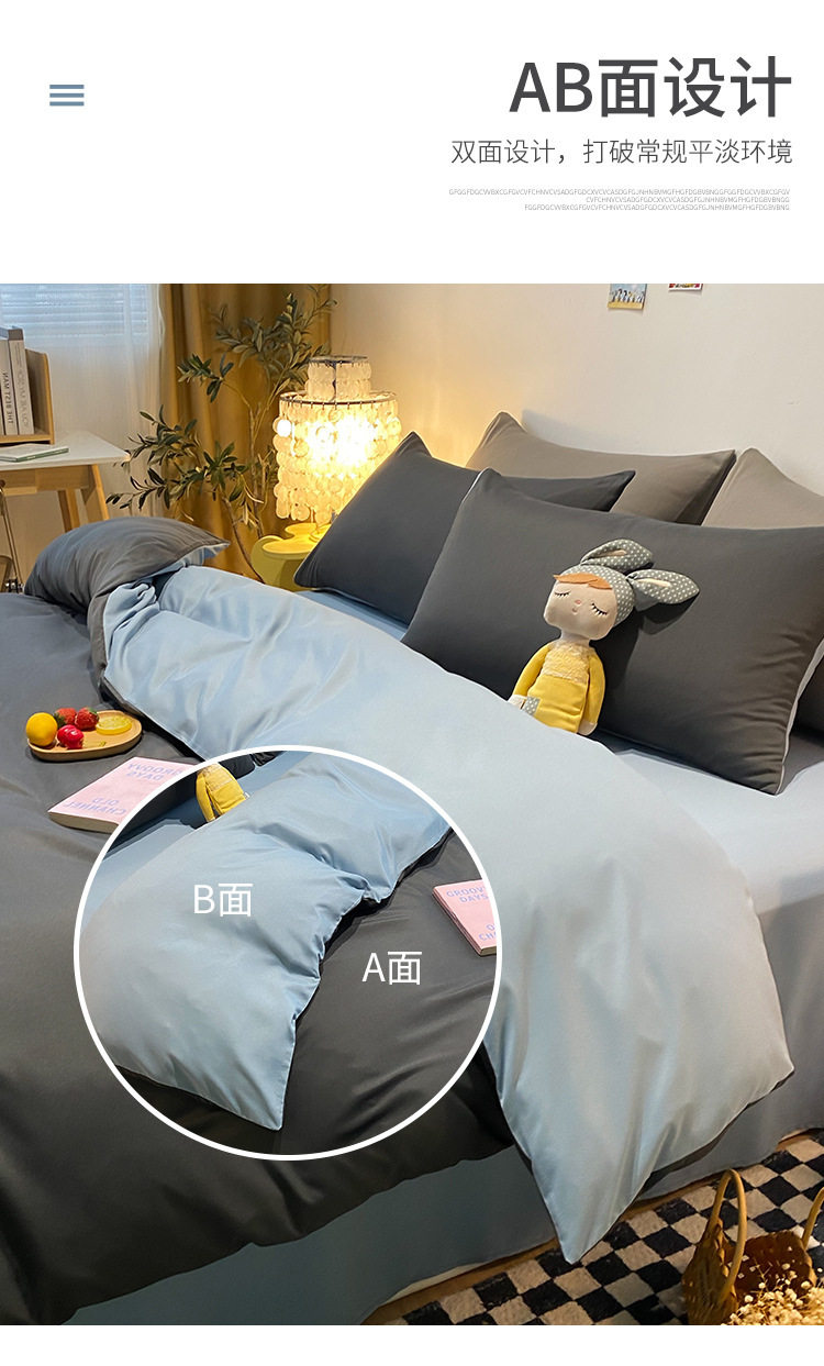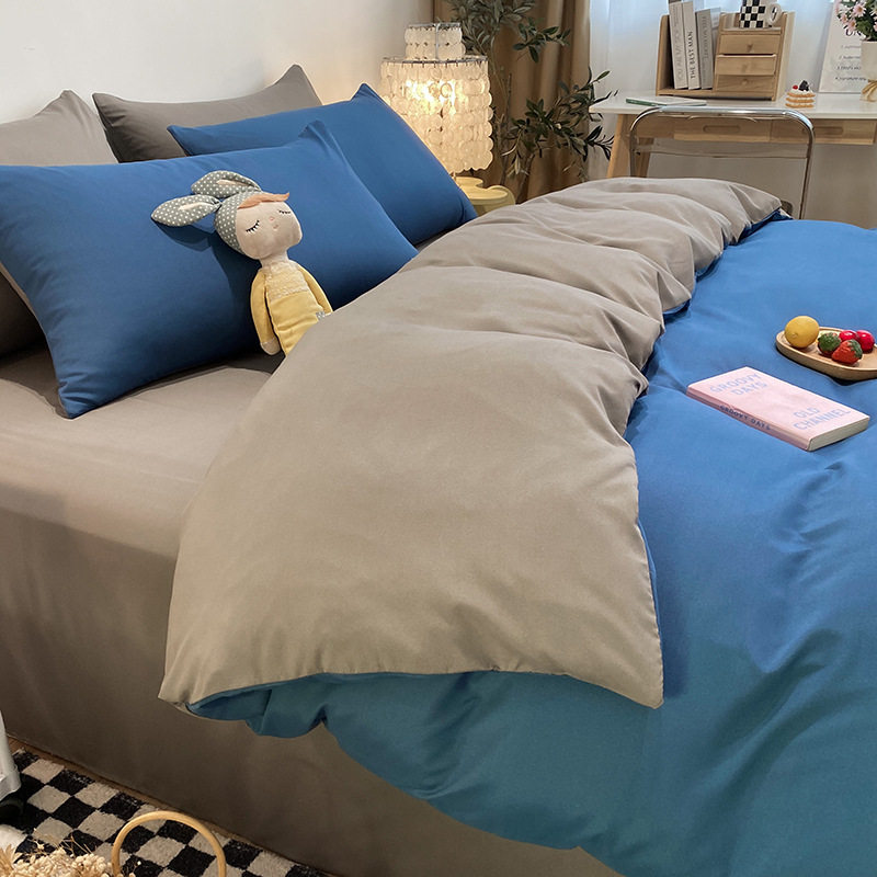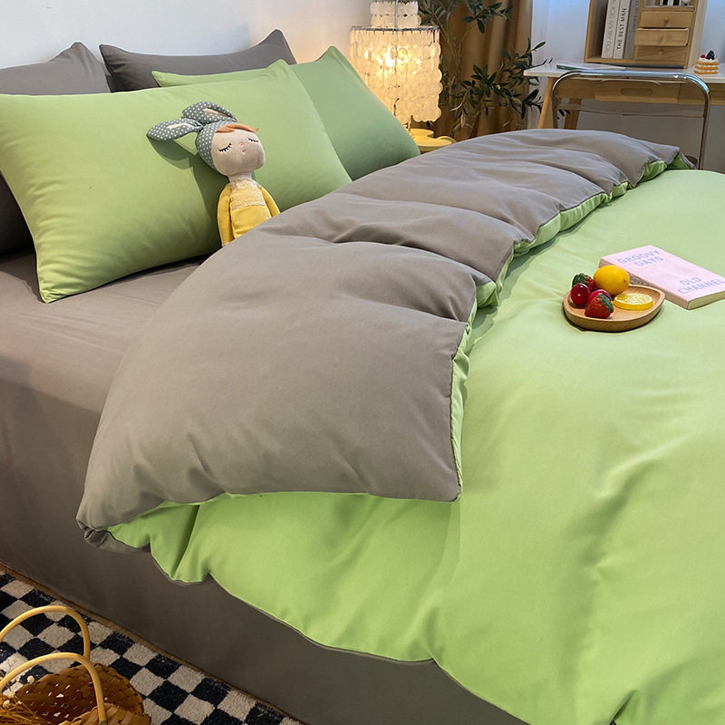 Four-Piece Set of Pure Color Washed Cotton Bed Sheetss, Quilt Cover, Brushed Bedding, Student Dormitory Single Bed Three-Piece Set, Normcore
