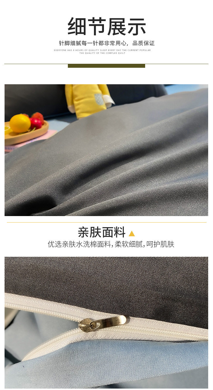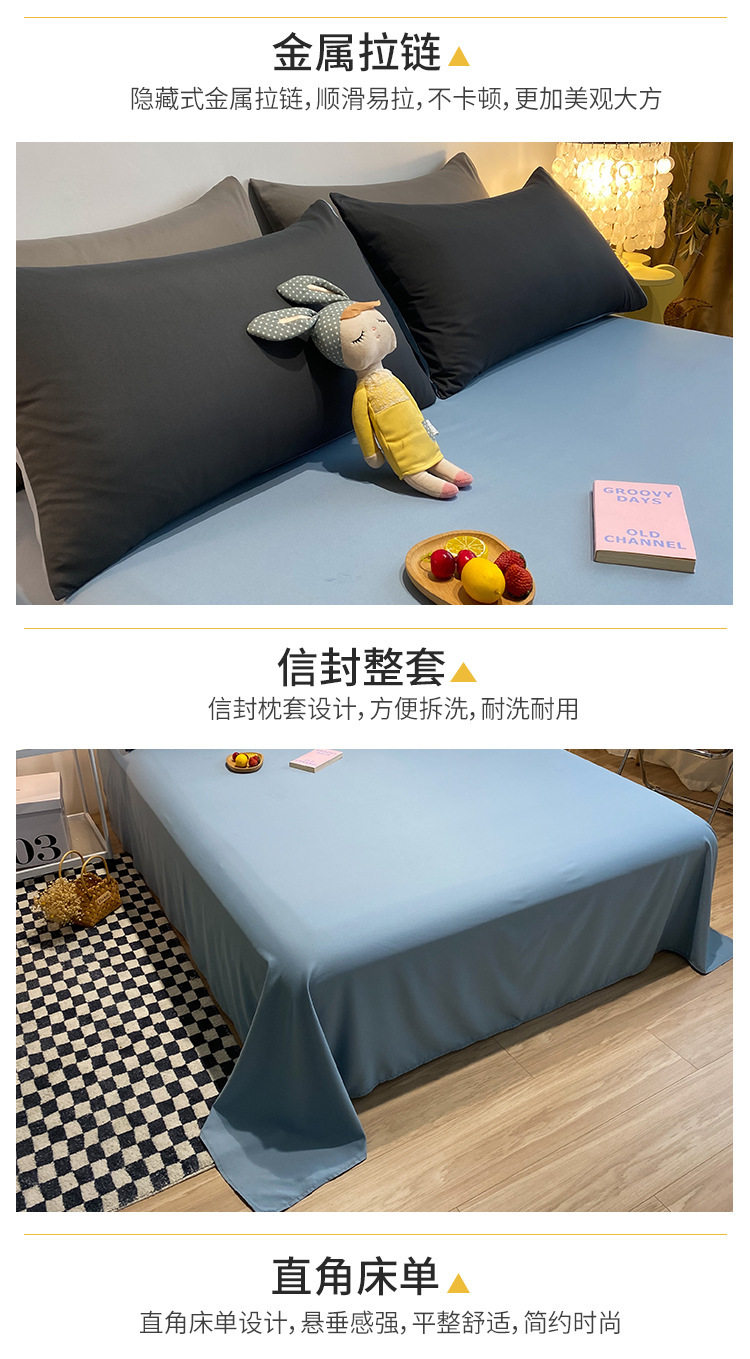 | Dimensions | Solid color 150*200cm quilt cover set of three,Solid color 150*200cm quilt cover four-piece set,Solid color 180*220cm quilt cover set of four,Solid color 200*230cm quilt cover set of four |