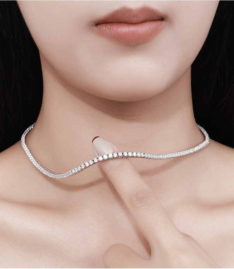 2.5mm 6-Point Moissanite Necklace for Women, 925 Silver, Full of Diamonds, Light Luxury, Versatile, Niche Style, Elegant Autumn and Winter Clavicle Chain