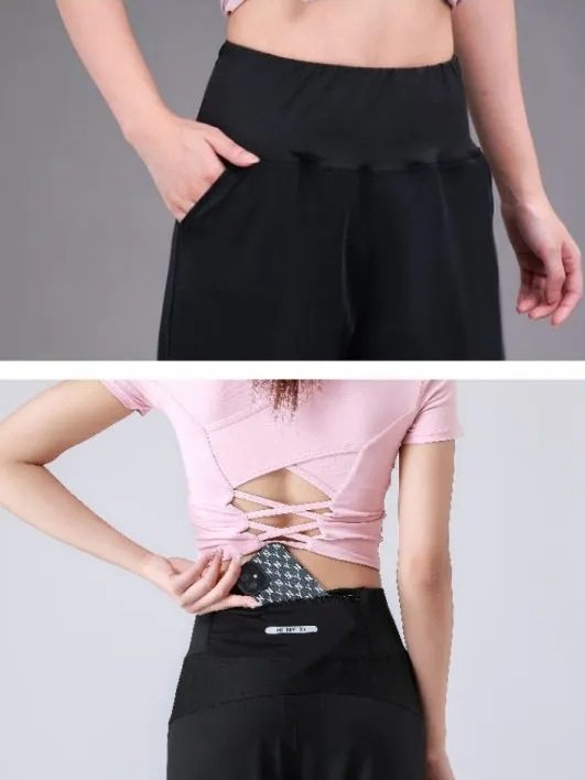 Yoga Sports Trousers Women's Autumn and Winter Running Pants Quick-drying High Waist Back Waist Zipper Bag Fitness Loose Fleece-Lit Pants