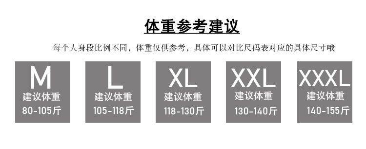 | Size | M [Suggested 40.00 kg-50.00 kg]],L [Recommendation 50.00 kg-60.00 kg]],XL [Suggested 60.00 kg-72.50 kg]],2xl [recommended 72.5-82.5kg ],3xl [recommended 82.5-85kg ] |