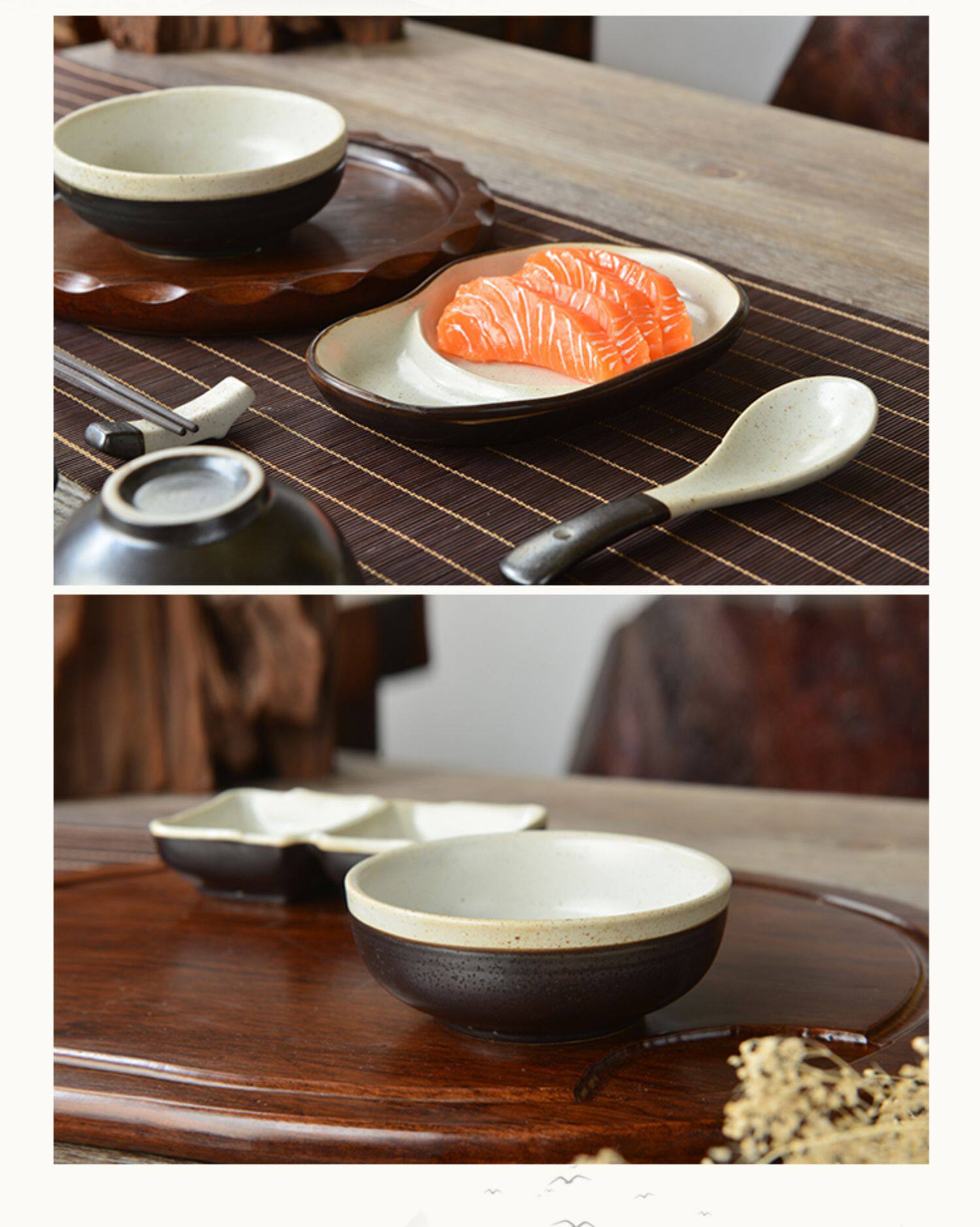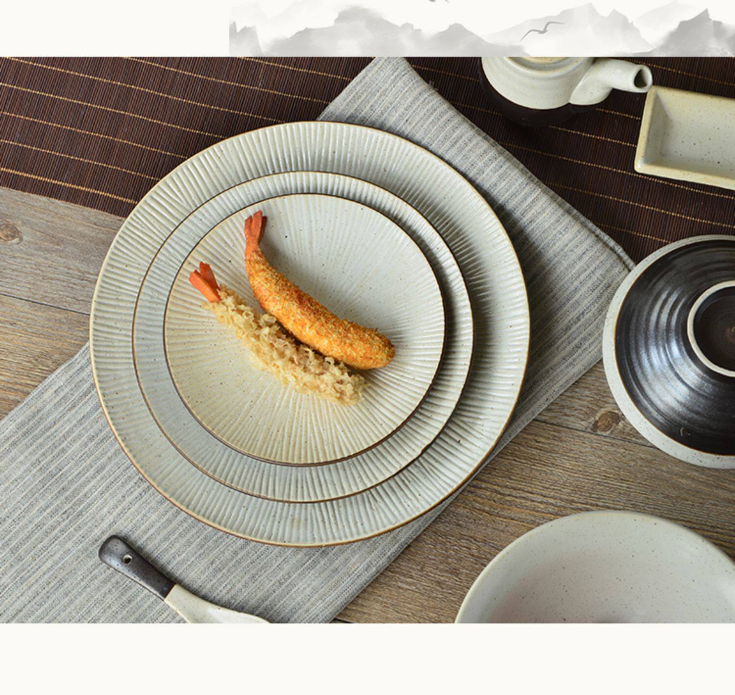 Japanese-style bowls and saucers combination high-end retro ceramic bowls and plates simple high-temperature round flat plate restaurant high-value tableware