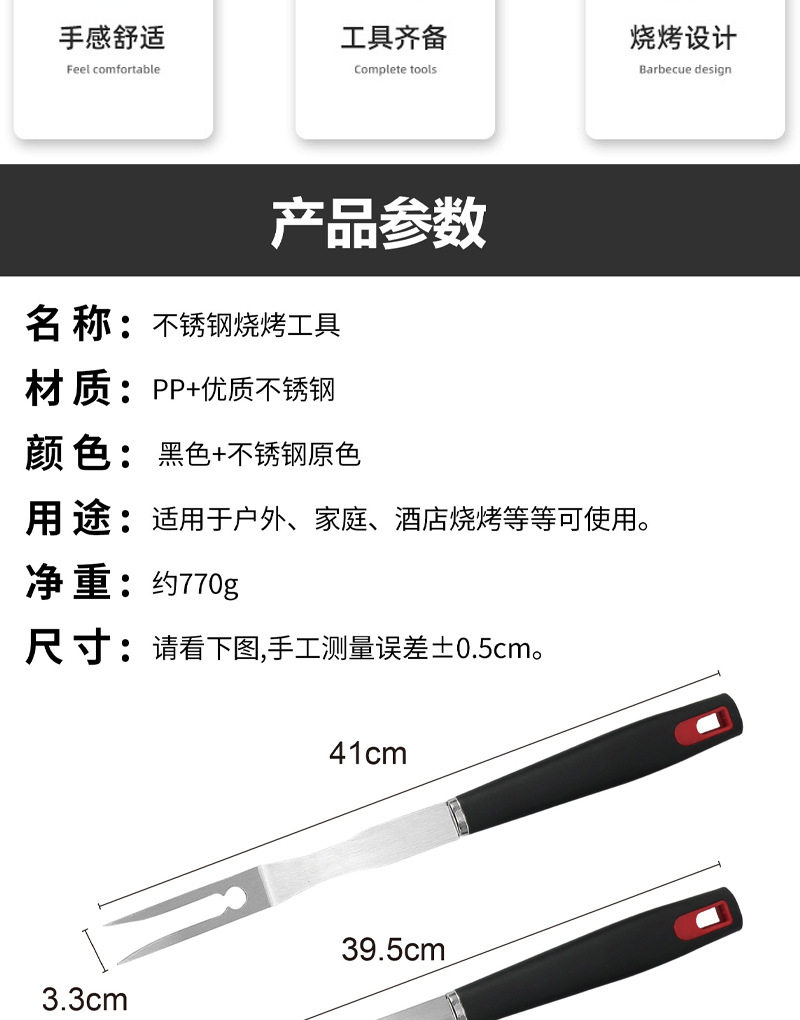 Amazon Hot Sale Stainless Steel BBQ Tools Set Home Outdoor BBQ Tools Combination PP Handle Baking Tool