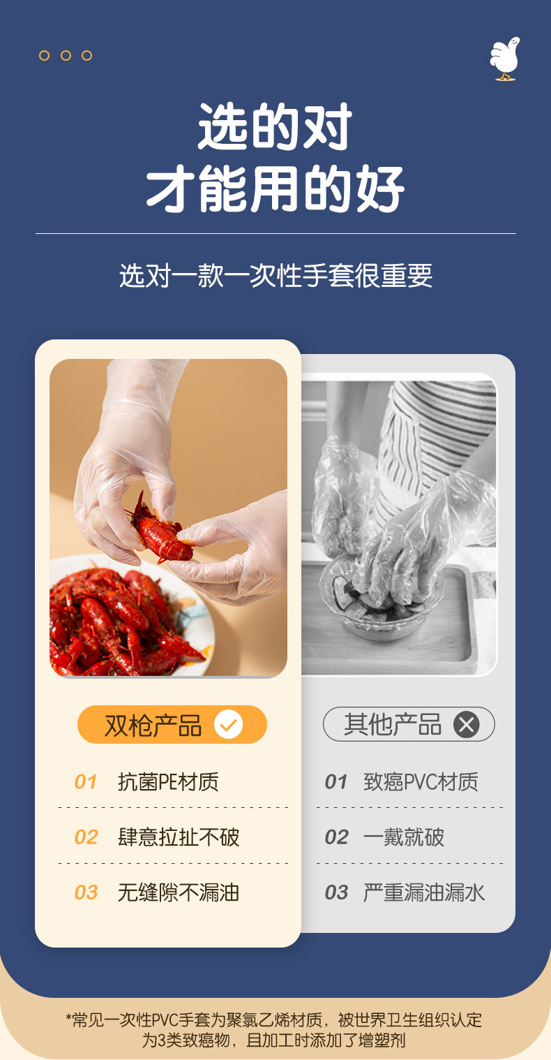 Double gun disposable gloves wholesale PE food grade thick durable household kitchen baking catering protective gloves