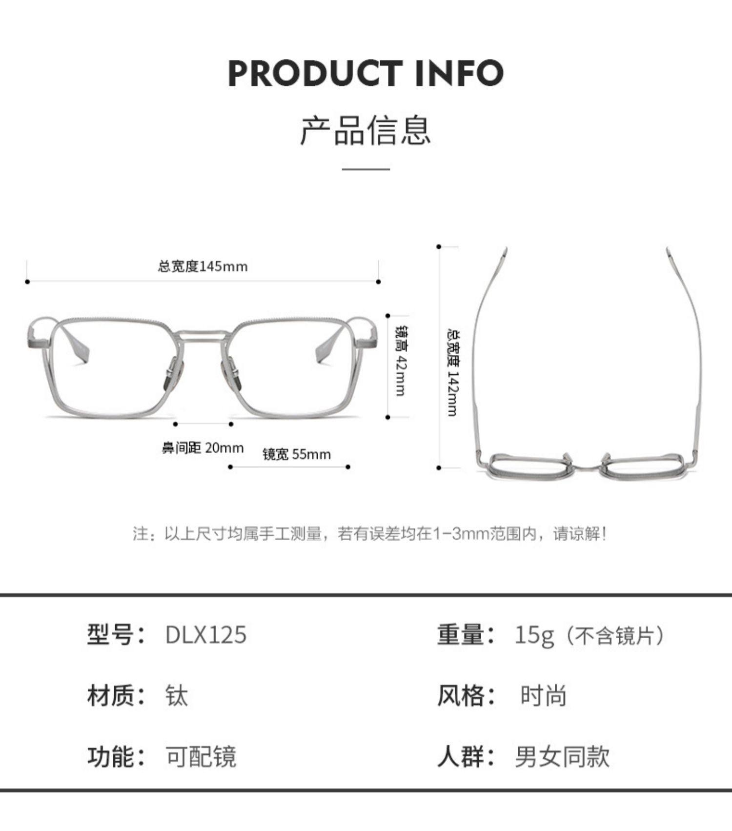 | Glasses style | Square frame |